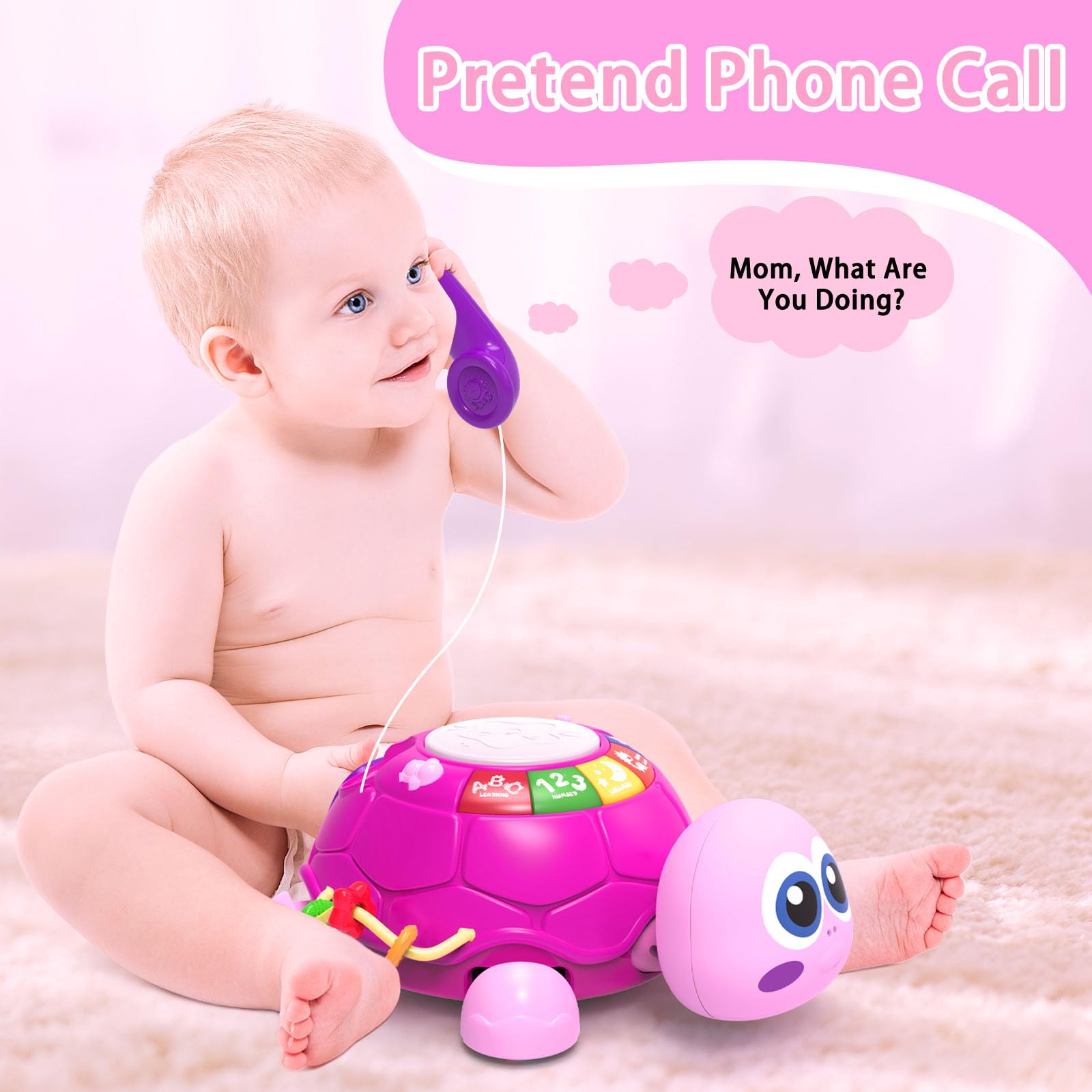 Ussybaby Baby Infant Light Up Music Turtle Toys, Baby Toys 6 To 12 Months With Phone, Baby Crawling Girl Toys 7 8 9 10 11 Months