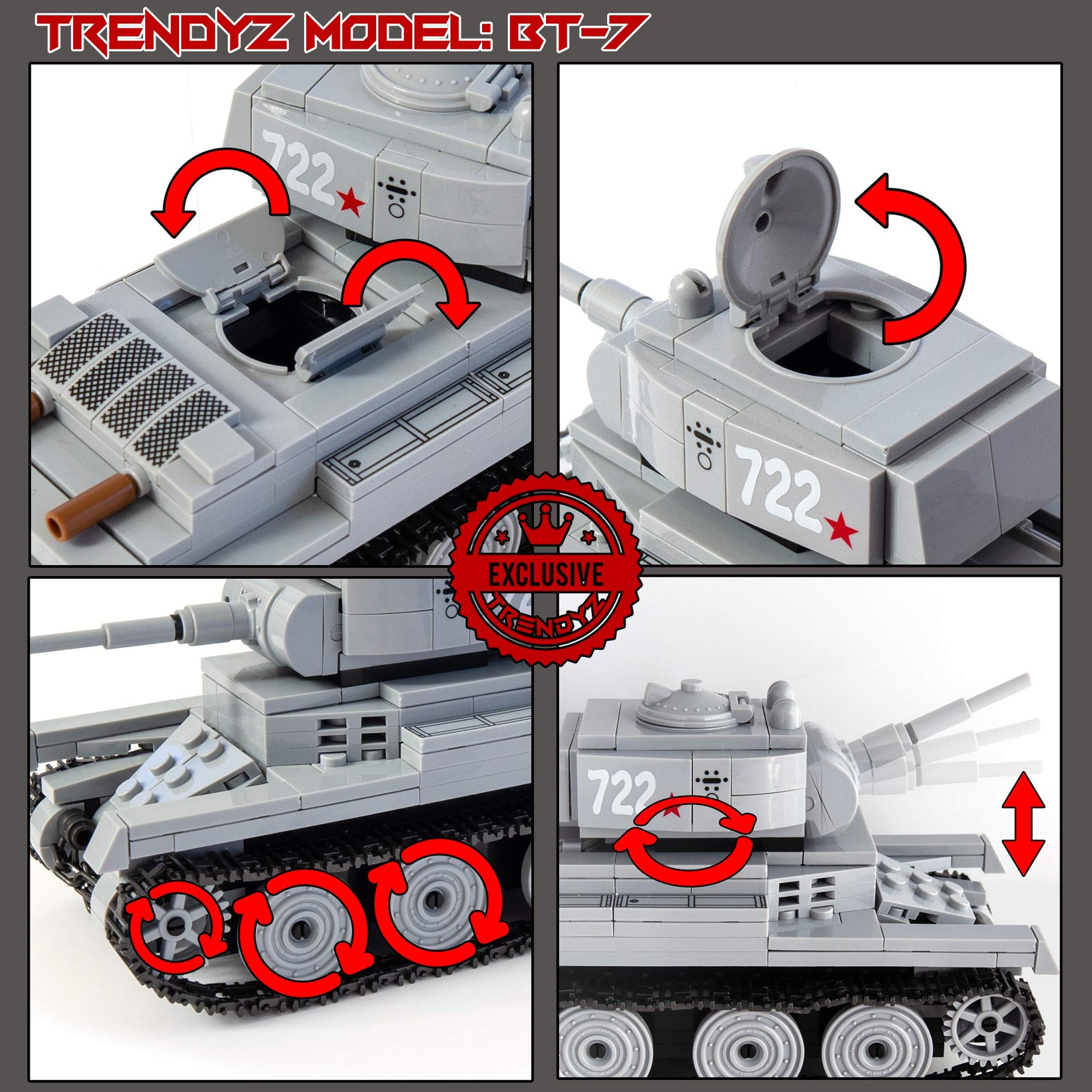 • Q: Is the WWII BT-7 Light Tank compatible with other building brands? A: Yes, the WWII BT-7 Light Tank is compatible with all major toy brick building brands, allowing you to mix and match with your existing sets.