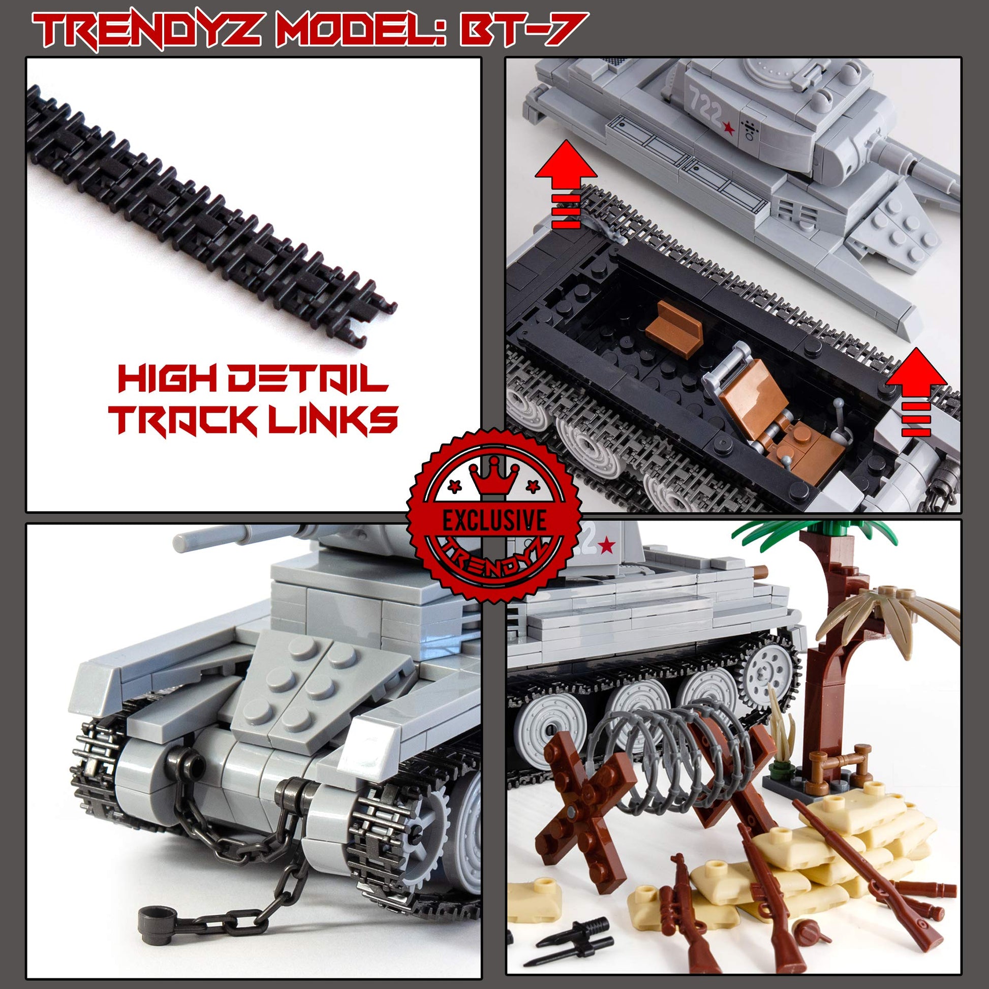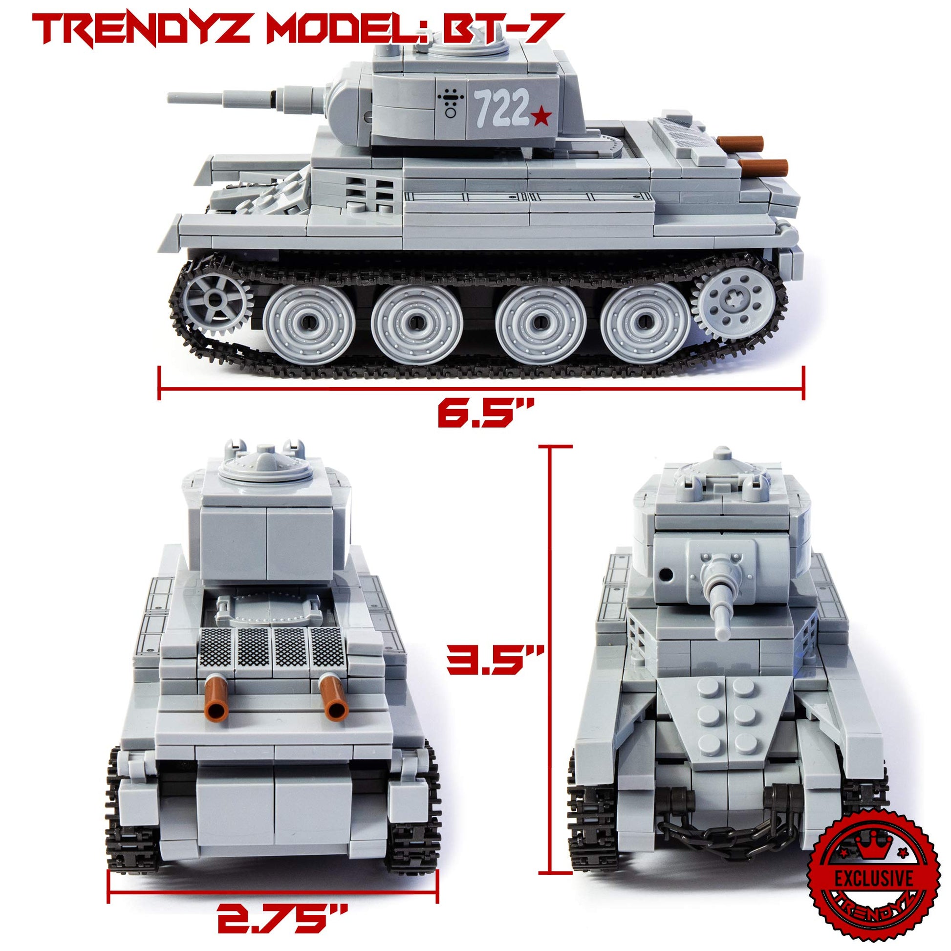 A High Quality Toy Building Set, Wwii Bt-7 Light Tank Comes Unassemble With Over 480+ Pieces. Made With High Quality Non-Toxic Material. What You See Is What You Will Get. It Comes With Step By Step Detail Instruction Manual. Item Comes In Poly Bag. Recommended Ages 13 & Up.