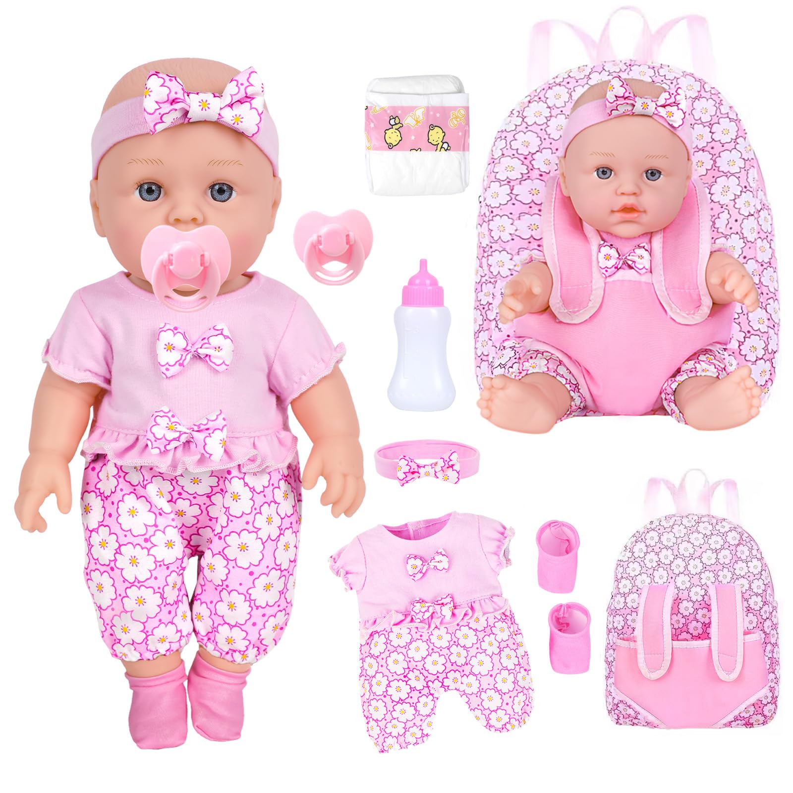 Uzidbto 12 Inch Baby Dolls With Backpack Carrier Can Store Doll Clothes And Accessories,12'' Reborn Baby Doll Set In Gift Box With Feeding Bottle Nipple Diaper For Kids Toddler Age 3+
