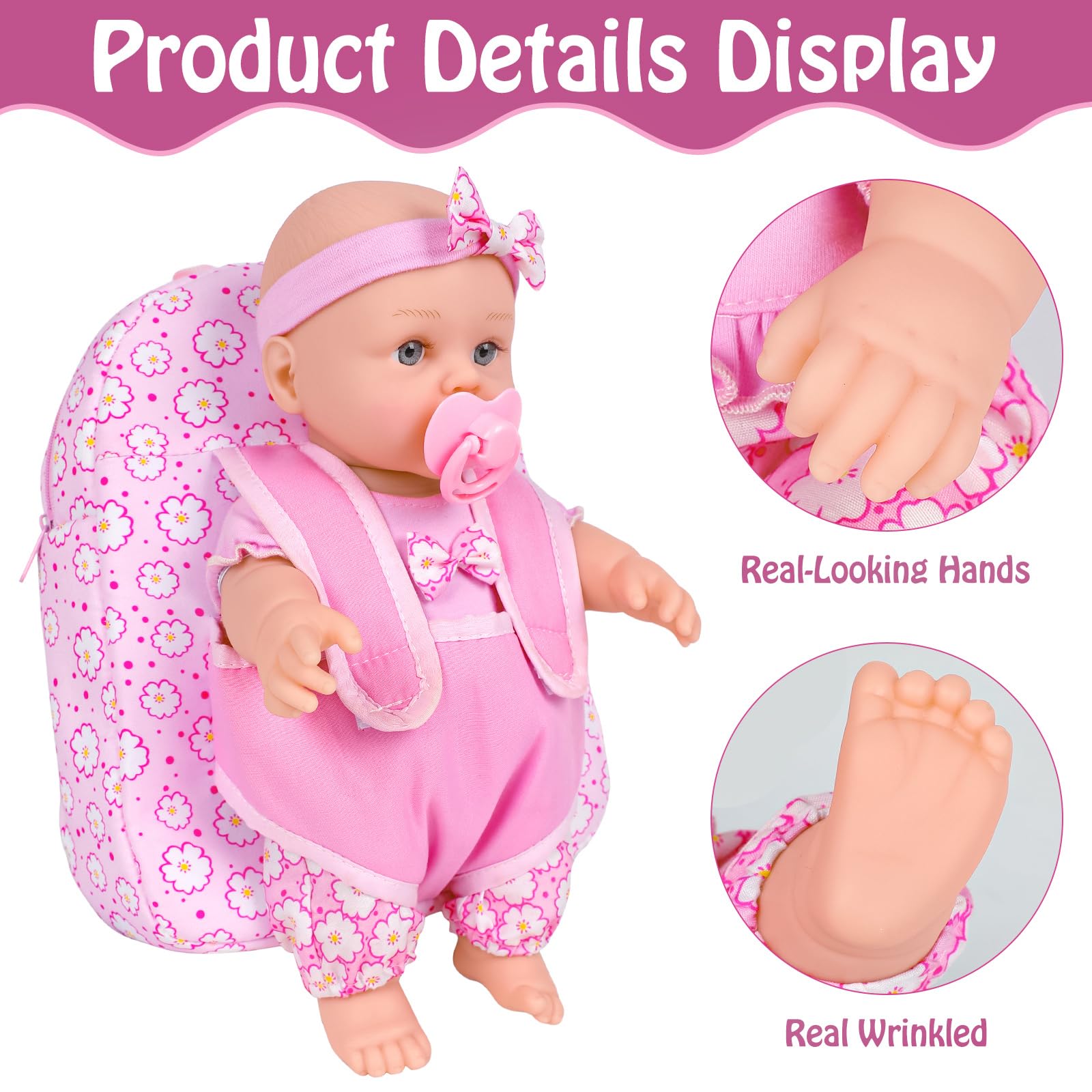 Uzidbto 12 Inch Baby Dolls With Backpack Carrier Can Store Doll Clothes And Accessories,12'' Reborn Baby Doll Set In Gift Box Wi