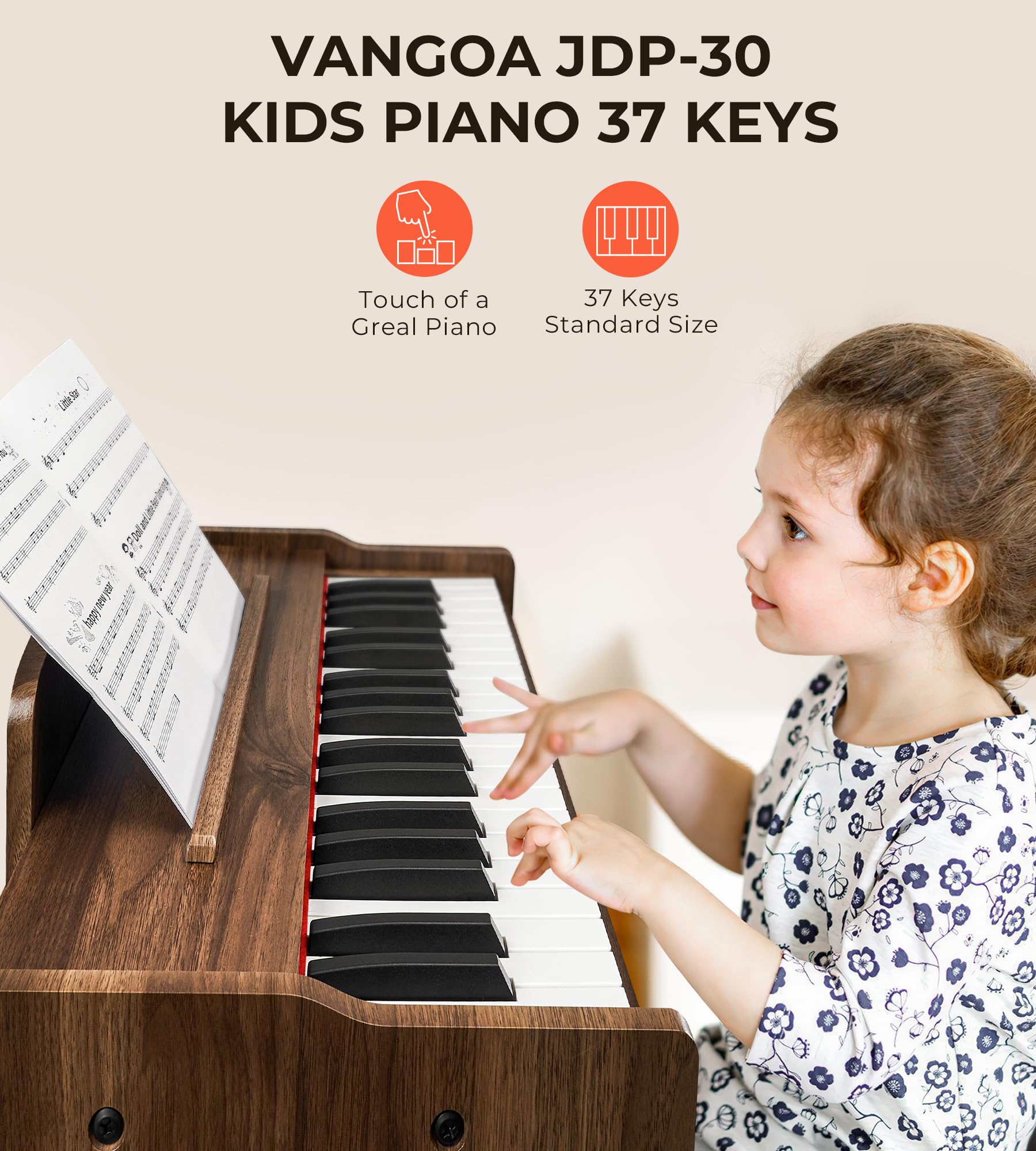 Vangoa Kids Piano Keyboard, 37 Keys Digital Piano for Kids, Music Educational Instrument Toy, Wood Piano for Girls and Boys, Dar