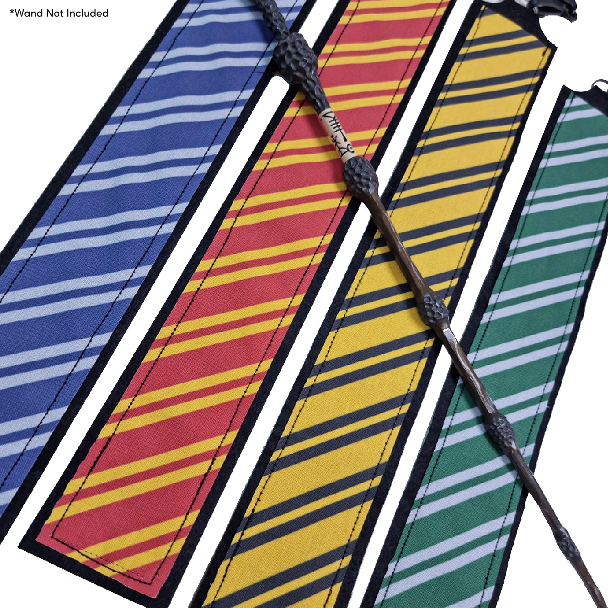 Wand Holder / Holster made from super soft material with school house colors. Perfect for parties, studio tours, costume parties and theme parks. Great for carrying your wand around, and not having to constantly hold it. Designed to fit most full length wands from 14-16 inches easily, comes with an adjustable lanyard and a belt loop on the back to attach directly onto belt to use as a holster. Choose from 4 different School House Colors; Red and Yellow, Green and Silver, Blue and Silver, Yellow and Black.