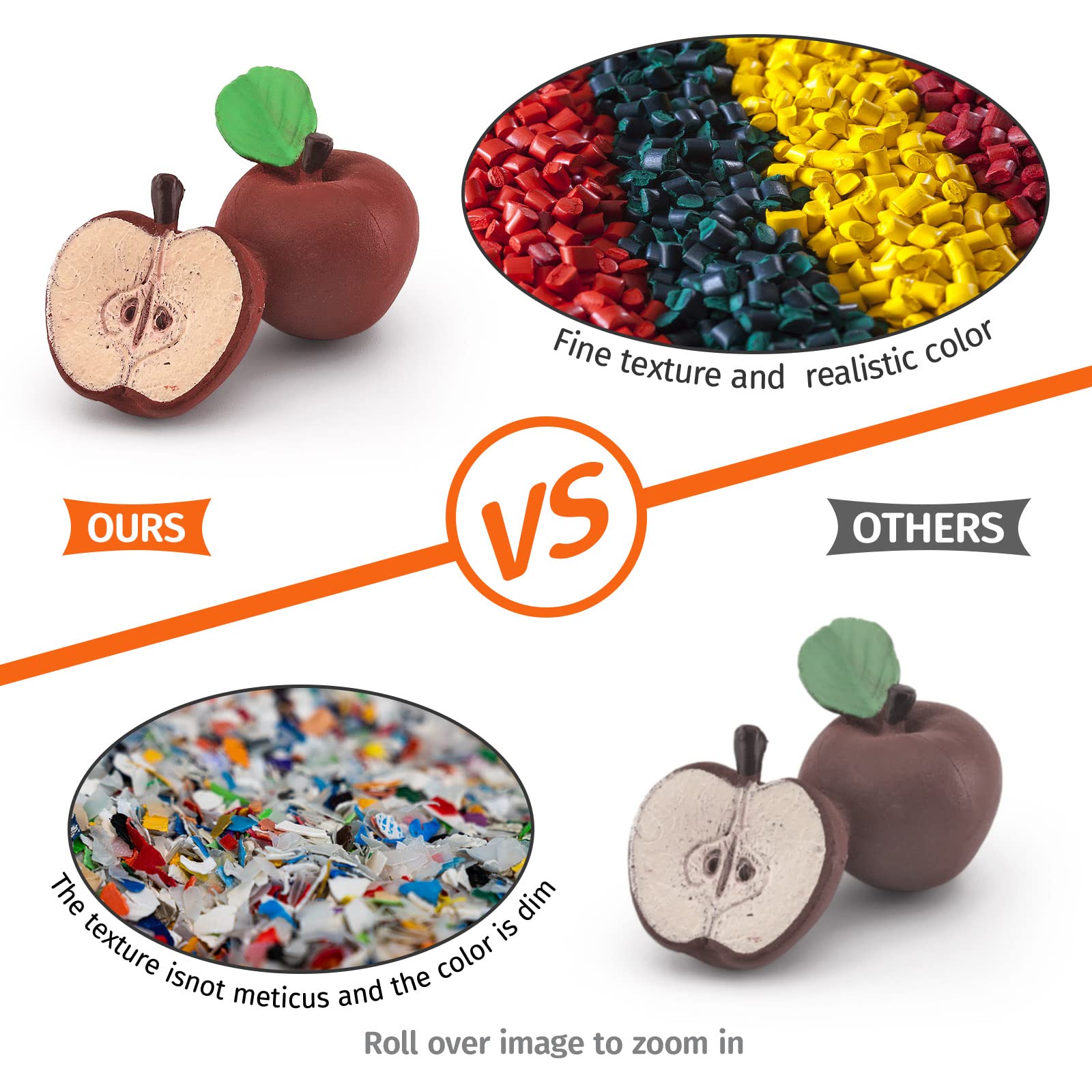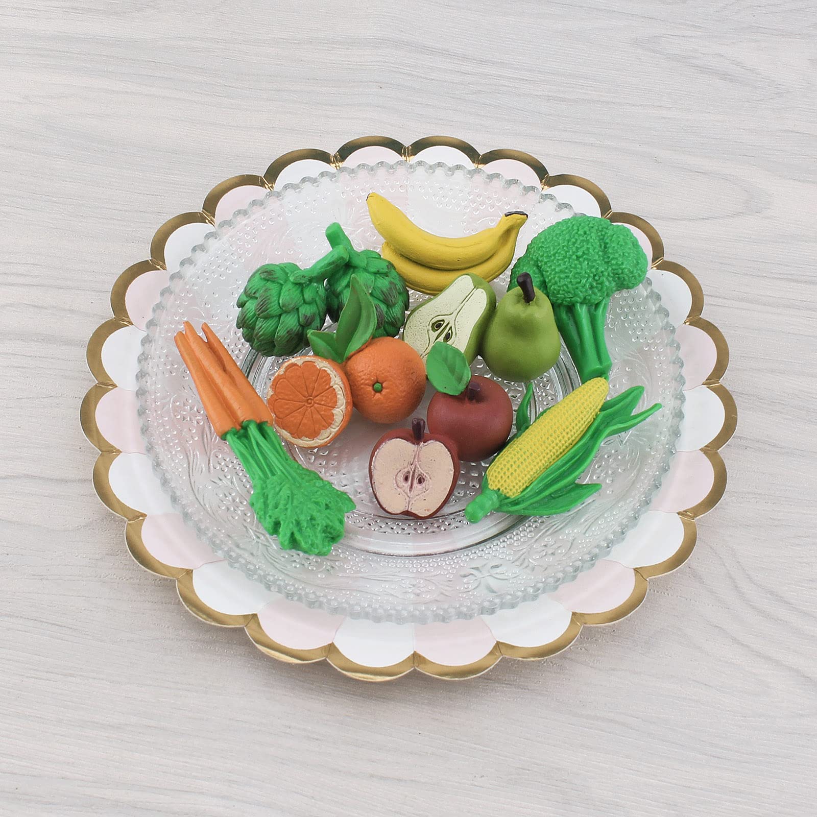 Name: Vegetables and Fruits Model toy set Material: PVC Color: as pictures show.Tips: 1. Due to the difference of monitors and lighting equipment, the color of each animals has a different body shape. Please check carefully before buying. 2.Choking Hazard small parts,please prevent kids swallowing the small parts by mistake.