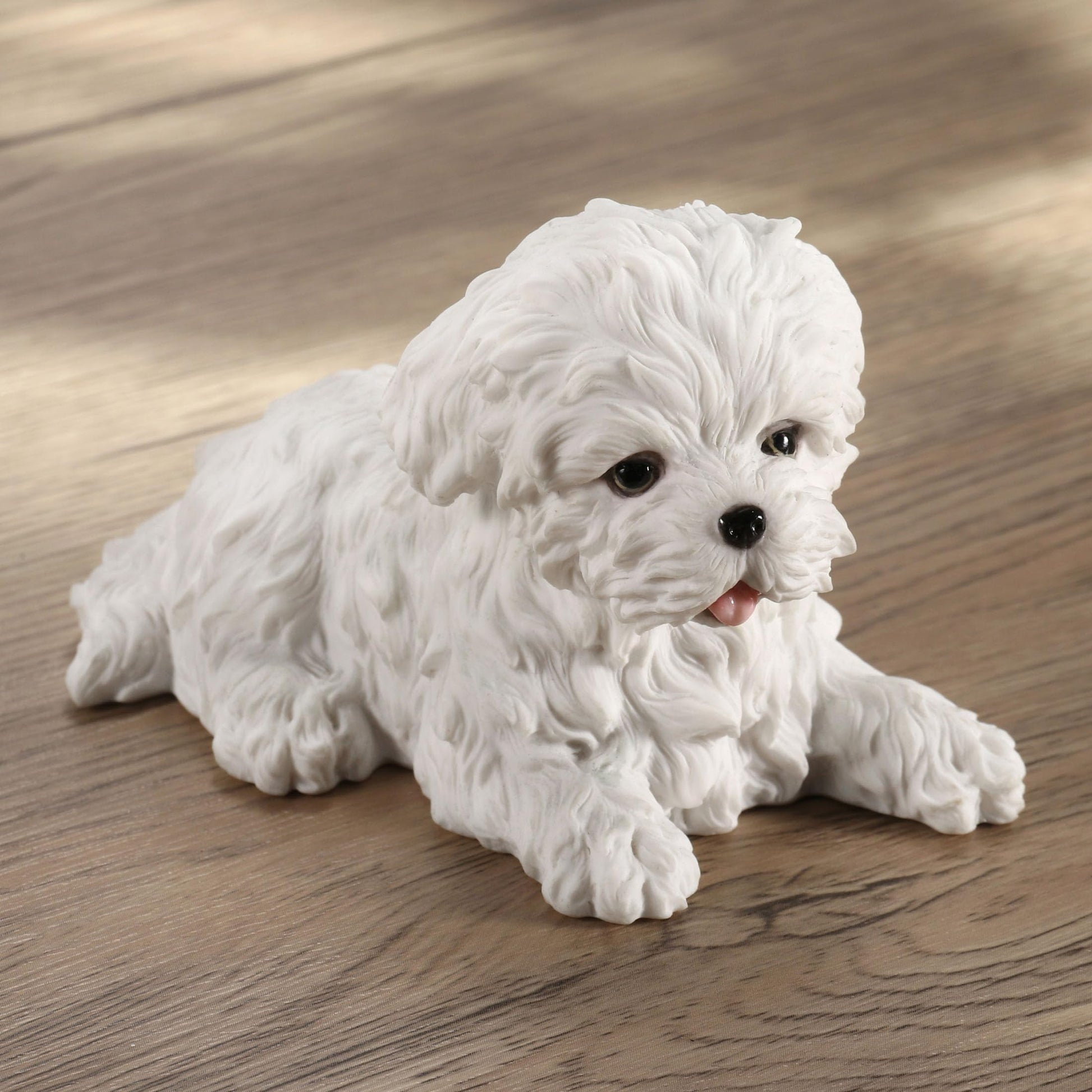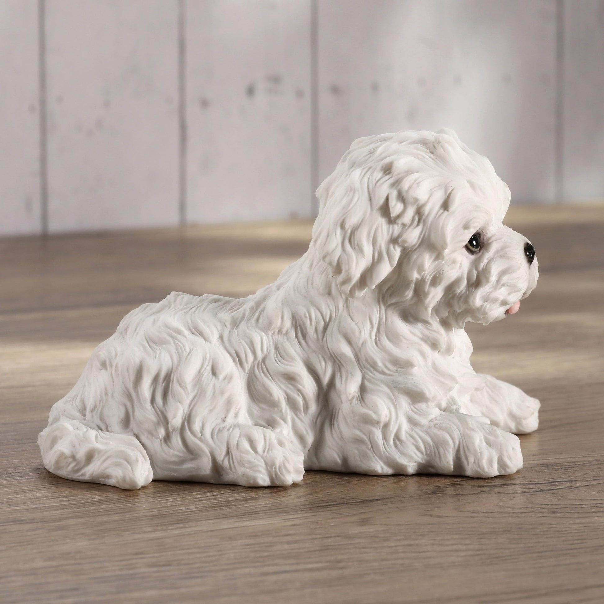 This Gorgeous 4.5 Inch Maltese Puppy Lying Down Decorative Statue Figurine Has The Finest Details And Highest Quality You Will Find Anywhere! Crafted With: Poly Stone