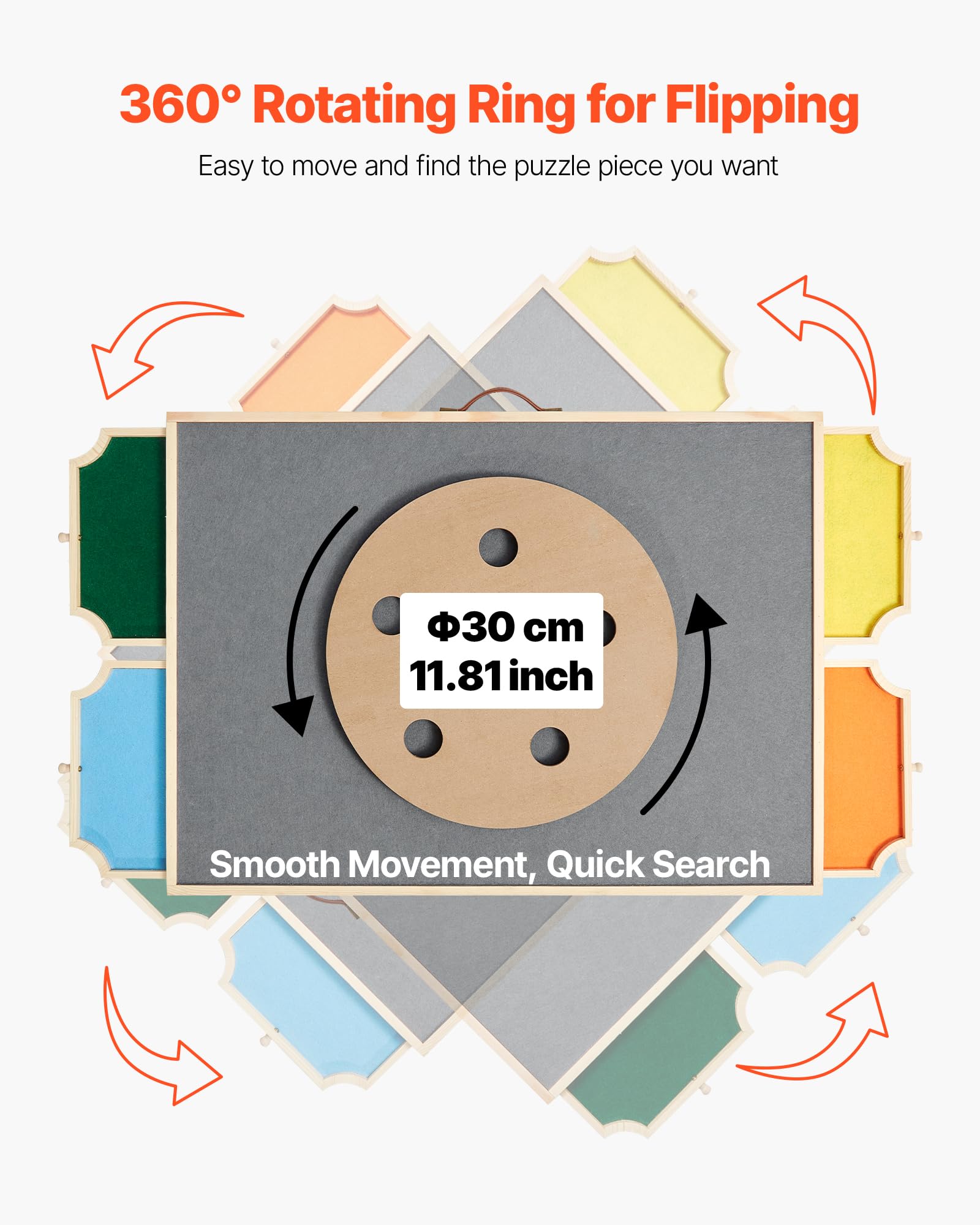 VEVOR 1000 Piece Rotating Puzzle Board with 4 Colorful Felt Drawers and Cover, 29x21 in Portable Wooden Table, Adjustable 2-Tilt