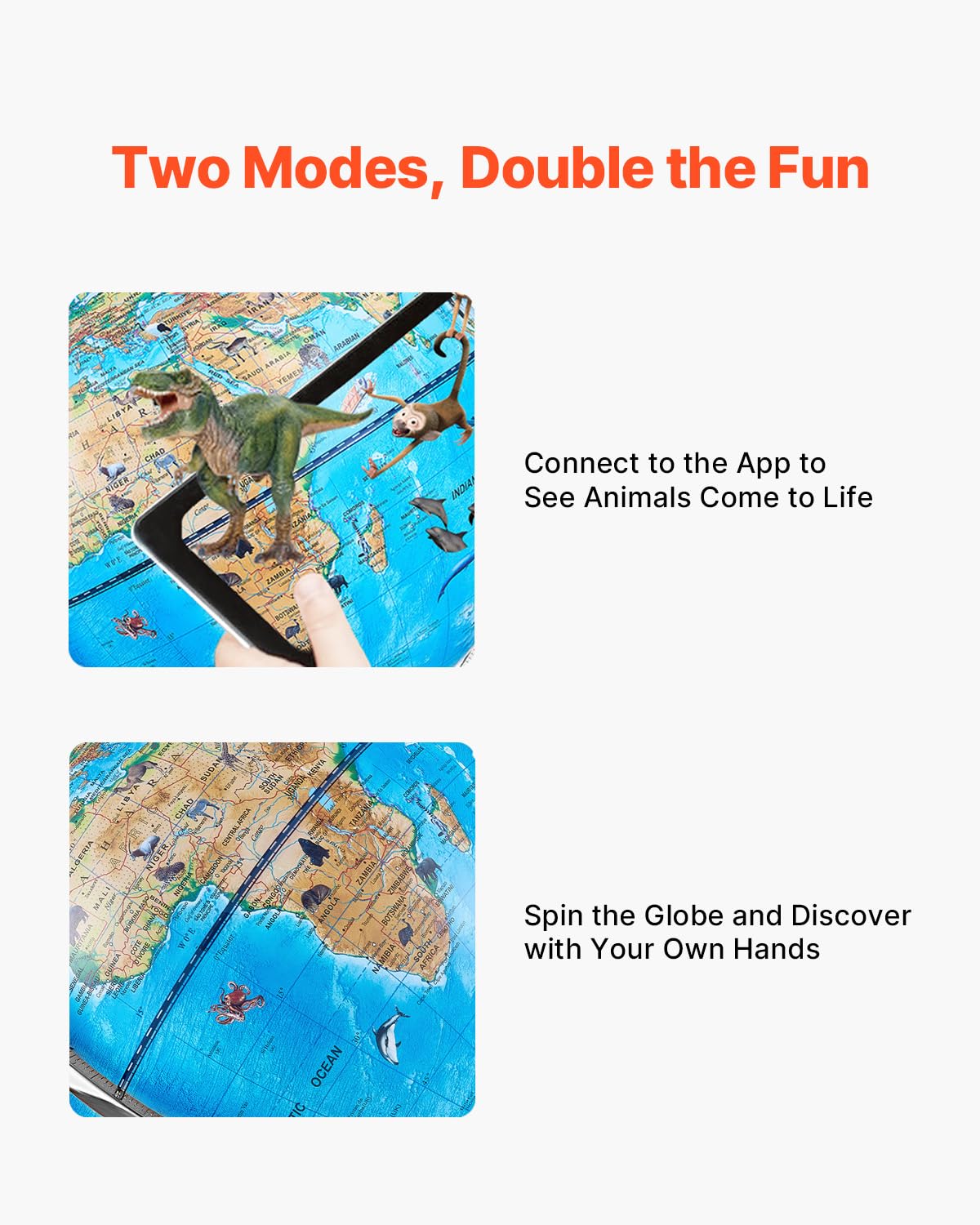 VEVOR Educational World Globe 10 in/254 mm Interactive Globe for Kids with AR Golden APP 720 Rotation LED Night Lighting 197 National Geographic Knowledge STEM Toy for Children Ages 4-10