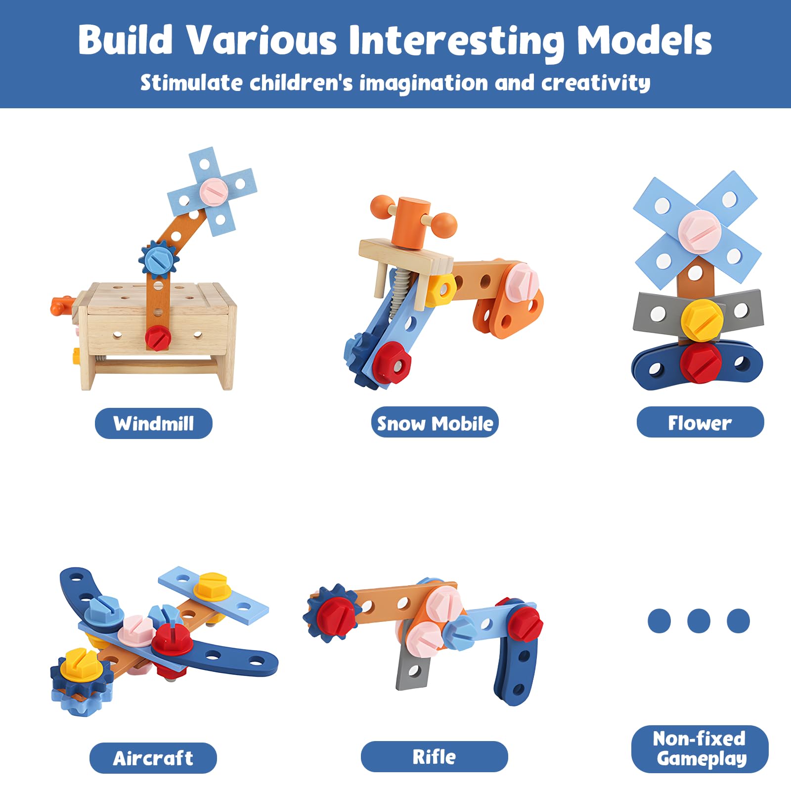 Vextronic Kids Tool Set, 38 PCS Wooden Montessori Toy Tools for Toddlers 1 2 3 4 5 6 with Tool Bench/Box, Play Toddler Tool Set,