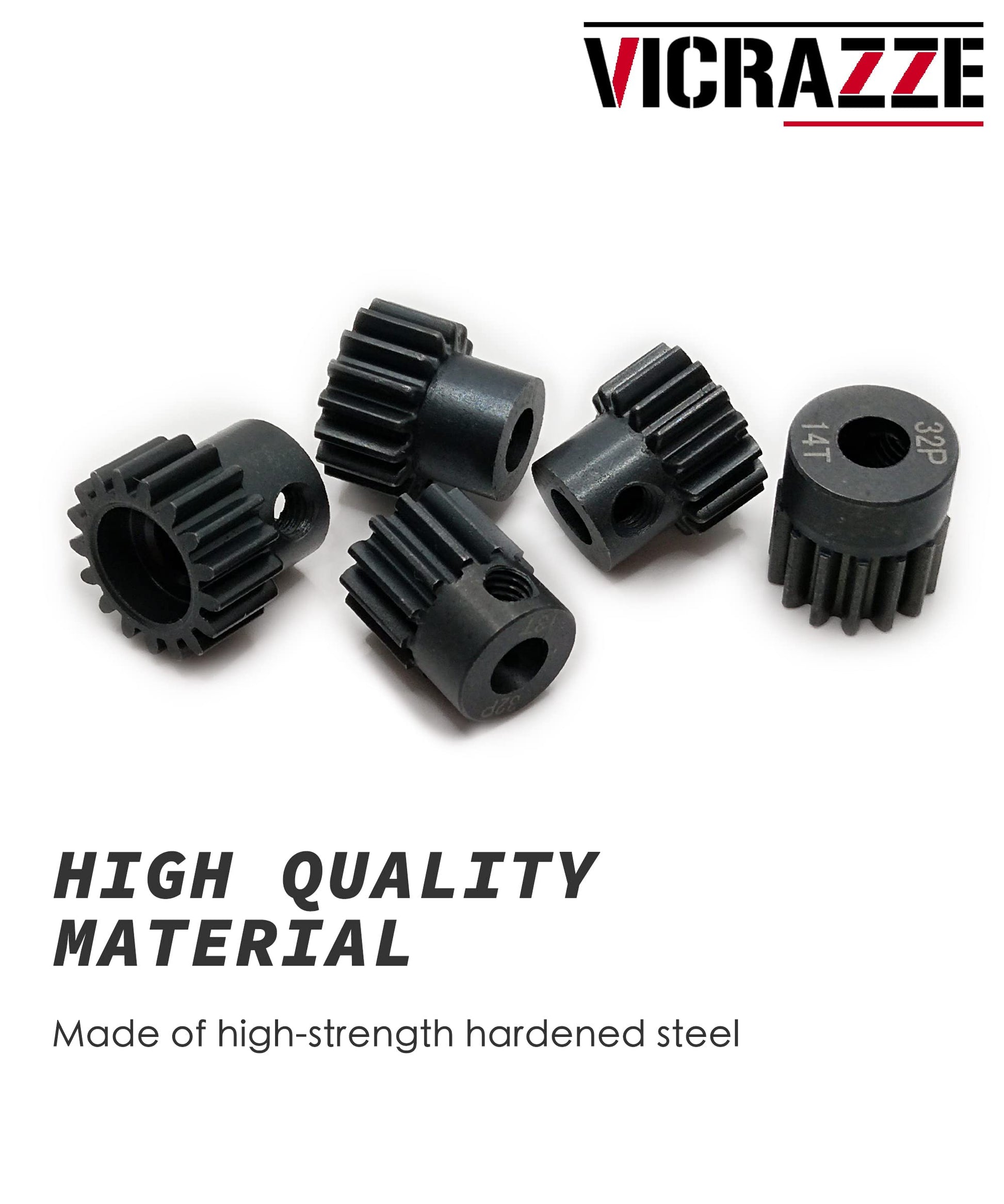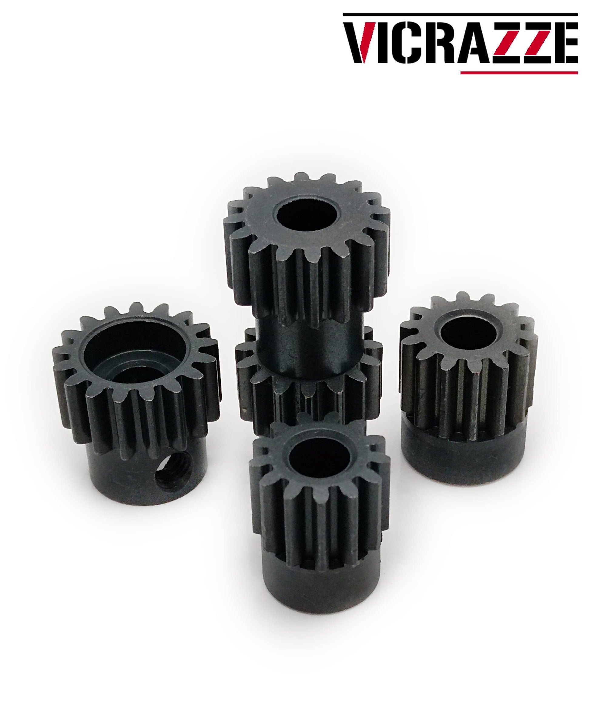 VICRAZZE 32p 5mm Pinion Gear Set 13T 14T 15T 16T 17T with 1/8 inch(3.175mm) Coupler and hex key for 0.8 Metric Pitch RC Buggy Car Monster Truck Key Features: Made of heavy duty hardened steel, long time service Durable metal construction Quick change from 5mm gear shaft diameter to 3.175mm gear shaft diameter Work smoothly, long-lasting performance Specification: Tooth pitch: 32 Material: Metal 5 Size: 13T/14T/15T/16T/17T Note: *Make sure you thread lock the grub screw *Larger pinion gears will result in higher speeds while smaller pinion gears provide more torque *Since it is made of metal, please use some lubricant oil to reduce noise