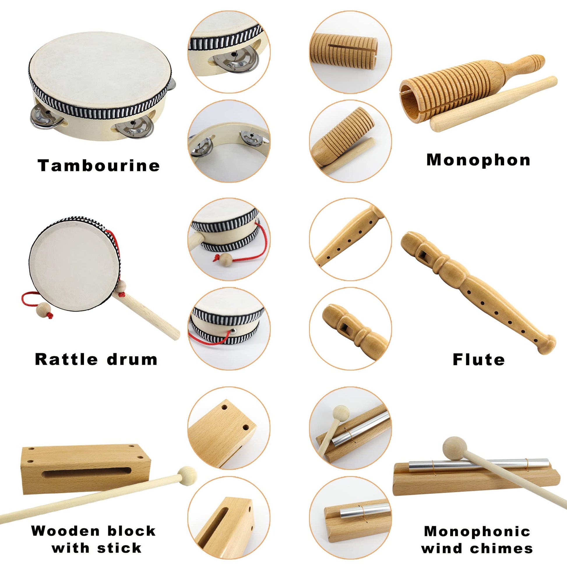 View compareVINJOE Wooden Music Set-Kids Musical Instruments Toys, Natural Wood Percussion Instruments Toy for Kids Preschool Education Baby
