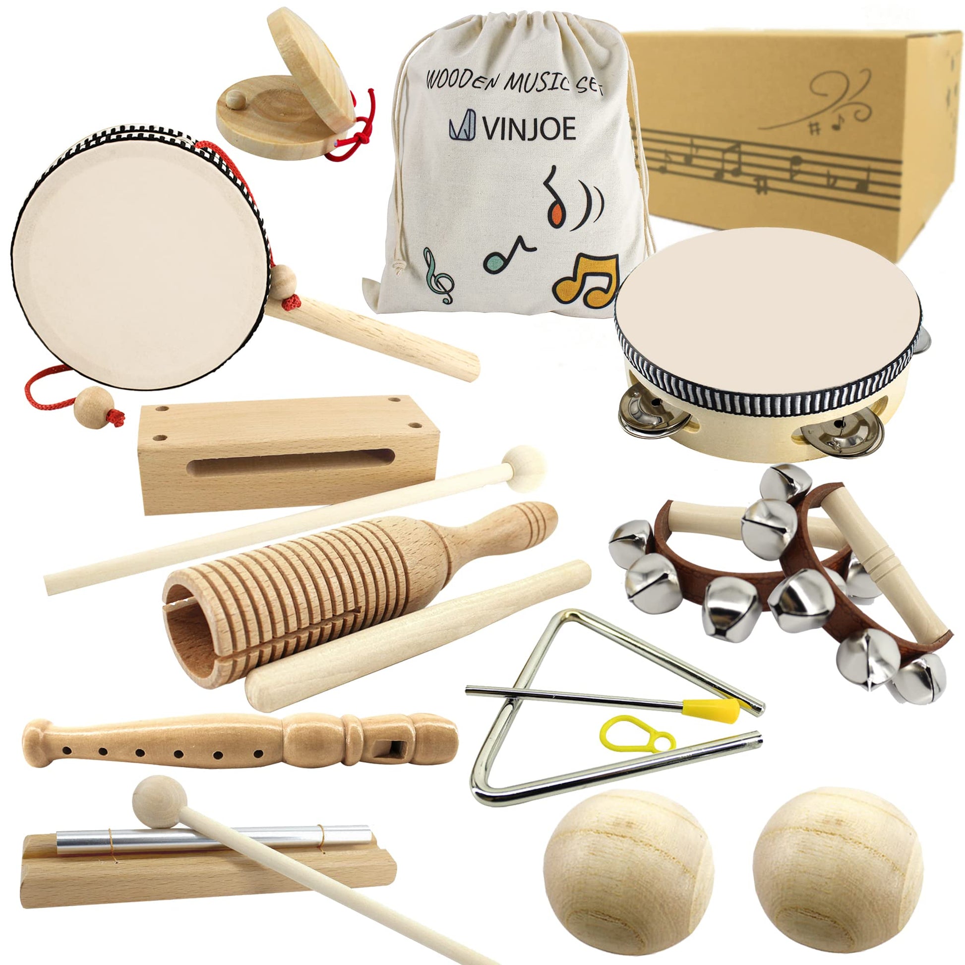 VINJOE Wooden Music Set-Kids Musical Instruments Toys, Natural Wood Percussion Instruments Toy for Kids Preschool Education Baby