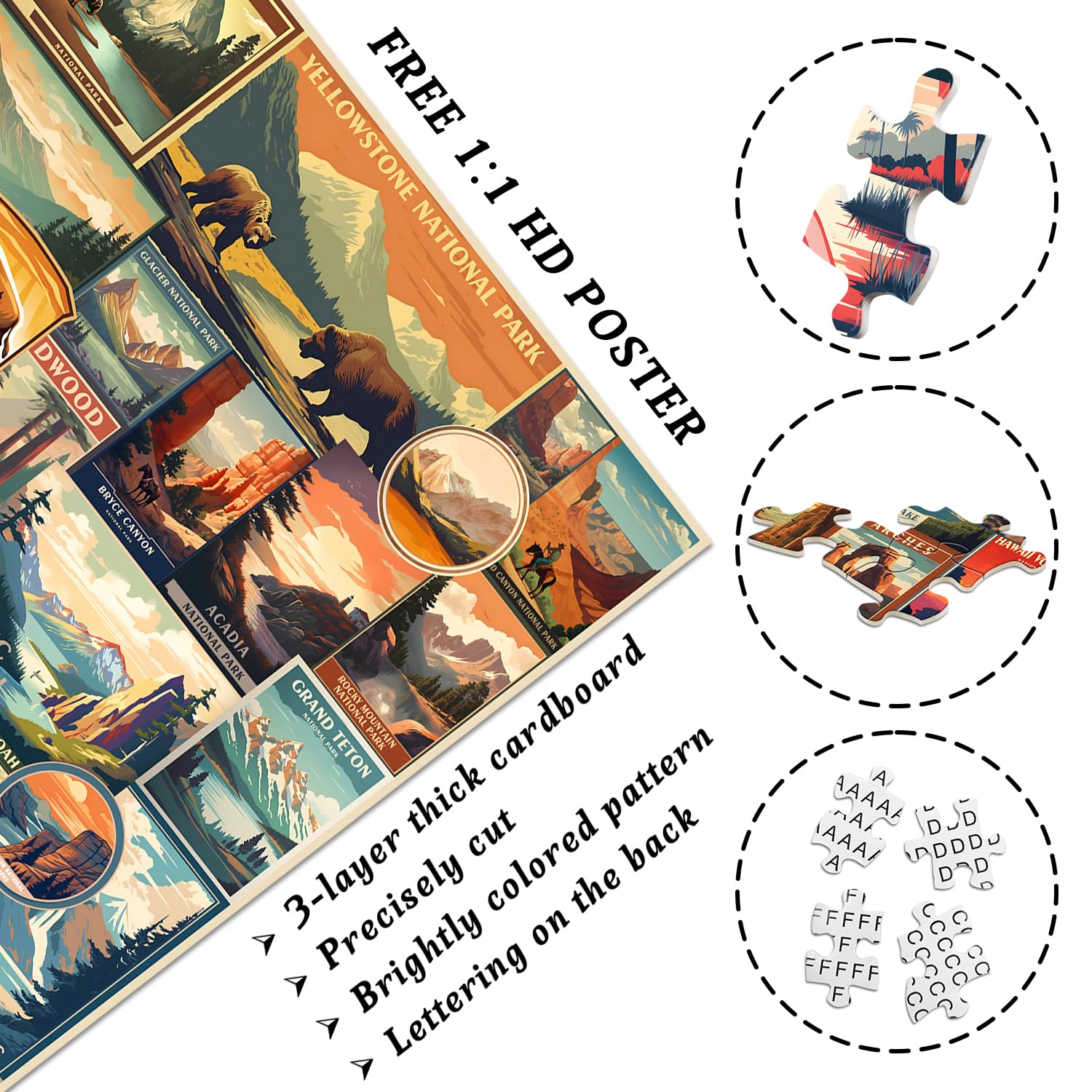 Vintage National Parks Puzzle For Adults 1000 Pieces, Travel Poster Landscape Puzzle Including Yellowstone Zion Acadia Yosemite, Nature Jigsaw Puzzles Scenery Mountain Scene