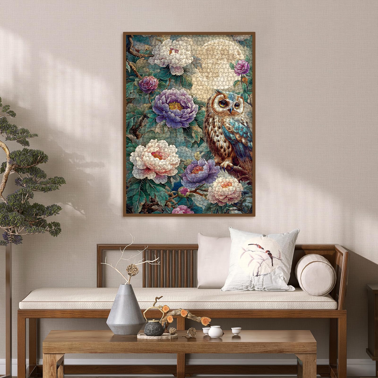 Vintage Owl Puzzles For Adults 1000 Pieces, Pretty Flower Nature Plant Peony Jigsaw Puzzles, Art Beautiful Bird Moon Floral Puzz