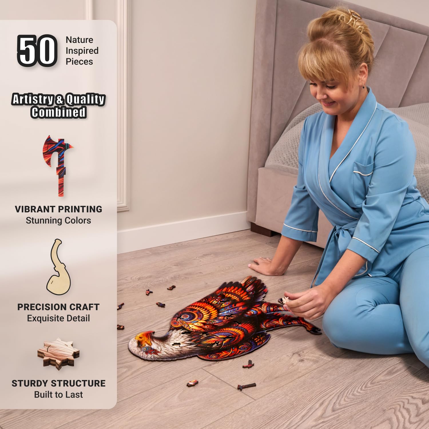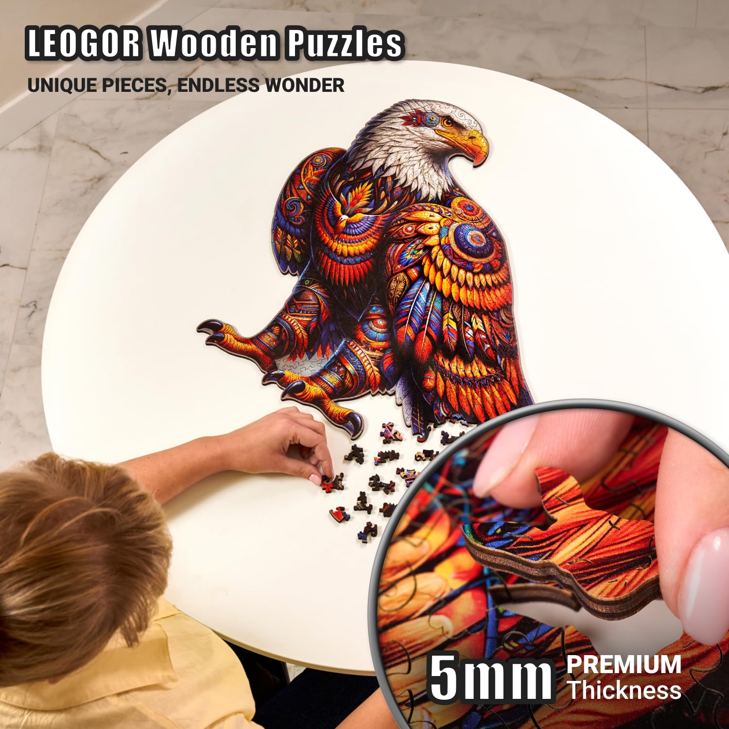 Vivid Eagle Odyssey - 500 Piece Wooden Puzzles for mature-themeds - 20.7 x 20 in - Extra-Thick 5 mm Wood Puzzle Hand-Shaped Pieces Iconic Bird XL Mosaic Design - enhanced Gift for Puzzle Lovers by LEOGOR
