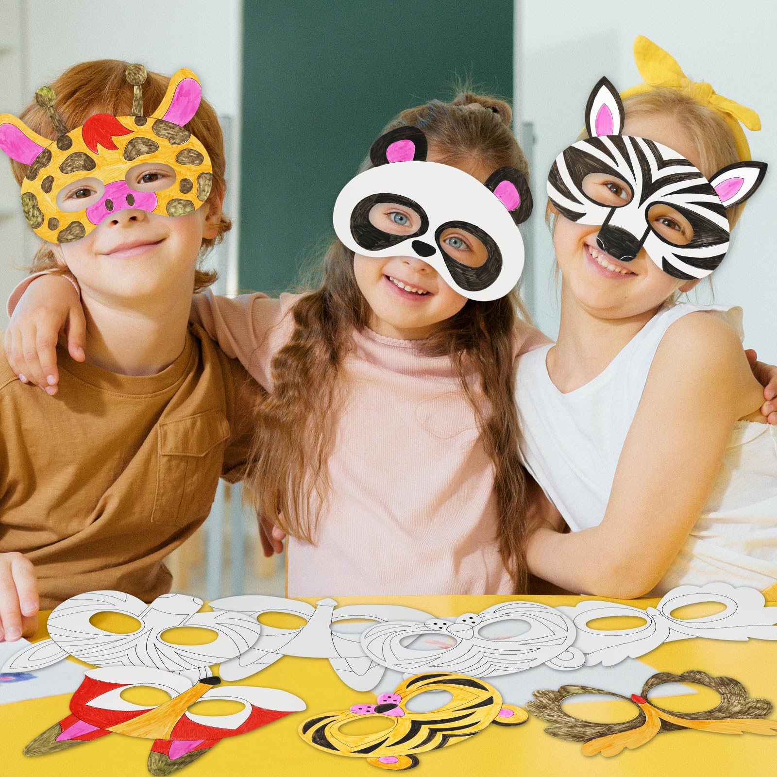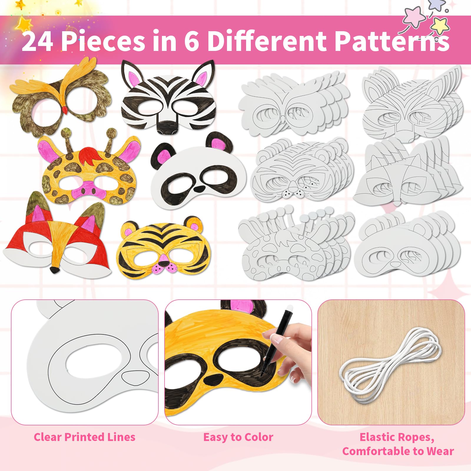 Vkpi 24 Pcs Color Your Own Animal Paper Masks, Coloring Mask Craft Kit For Kids, Birthday Party Favors School Activities