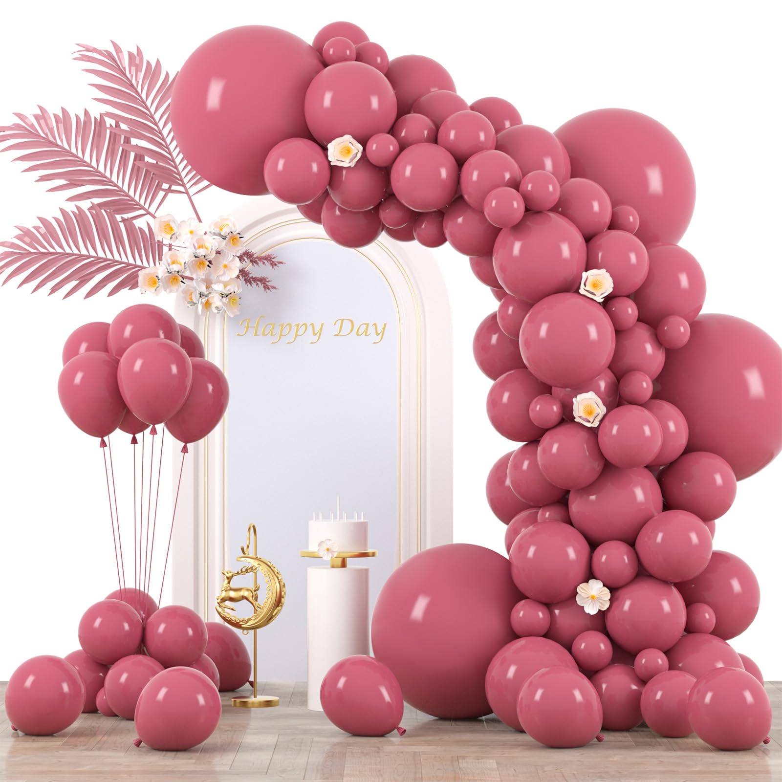 Voircoloria 130Pcs Retro Hot Pink Balloons Different Sizes 18'' 12'' 10'' 5'' Blush Hot Pink Latex Balloon Garland Arch Kit For