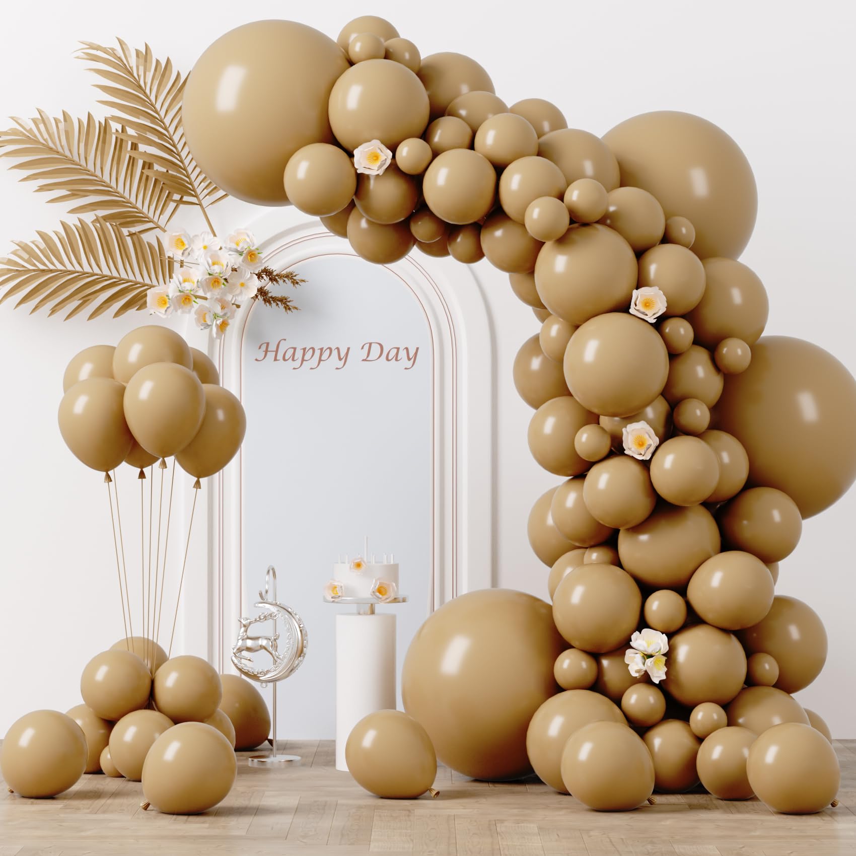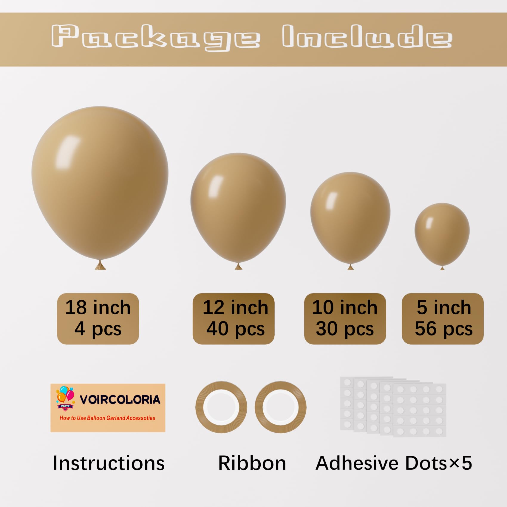 Voircoloria 130Pcs Tan Balloons Different Sizes 18'' 12'' 10'' 5'' Light Brown Latex Balloon Garland Arch Kit For Birthday Baby Shower Graduation Wedding Gender Reveal Anniversary Party Decorations Total 130Pcs Khaki Brown Balloons Package Includes: 56Pcs 5Inch Tan Balloons 30Pcs 10Inch Tan Balloons 40Pcs 12Inch Tan Balloons 4Pcs 18Inch Tan Balloons 2Pcs Roll Of Ribbons 100Pcs Adhesive Dots 1 Book Instruction Manual Of Balloon Accessories Warm And Sweet Reminders: 1.Please Do Not Inflate Light Brown Balloons More Than 90%, Or Rub Against Overheated And Sharp Objects To Avoid Sudden Popping. 2.Get Tan Balloons And Can Open It If You Have Any Questions About Balloons, You Can Contact Us In Advance Before The Party Starts. 3.All Usage Of Balloon Accessories Are In The Manual, But The Balloon Kit You Buy May Not Include All Balloon Accessories. Please Rest Assured That&Nbsp; The Voircoloria Balloon Kit Will Provide You With All The Necessary Balloon Accessories. 4.Strong Winds Or Excessive Clapping May Cause Them To Burst