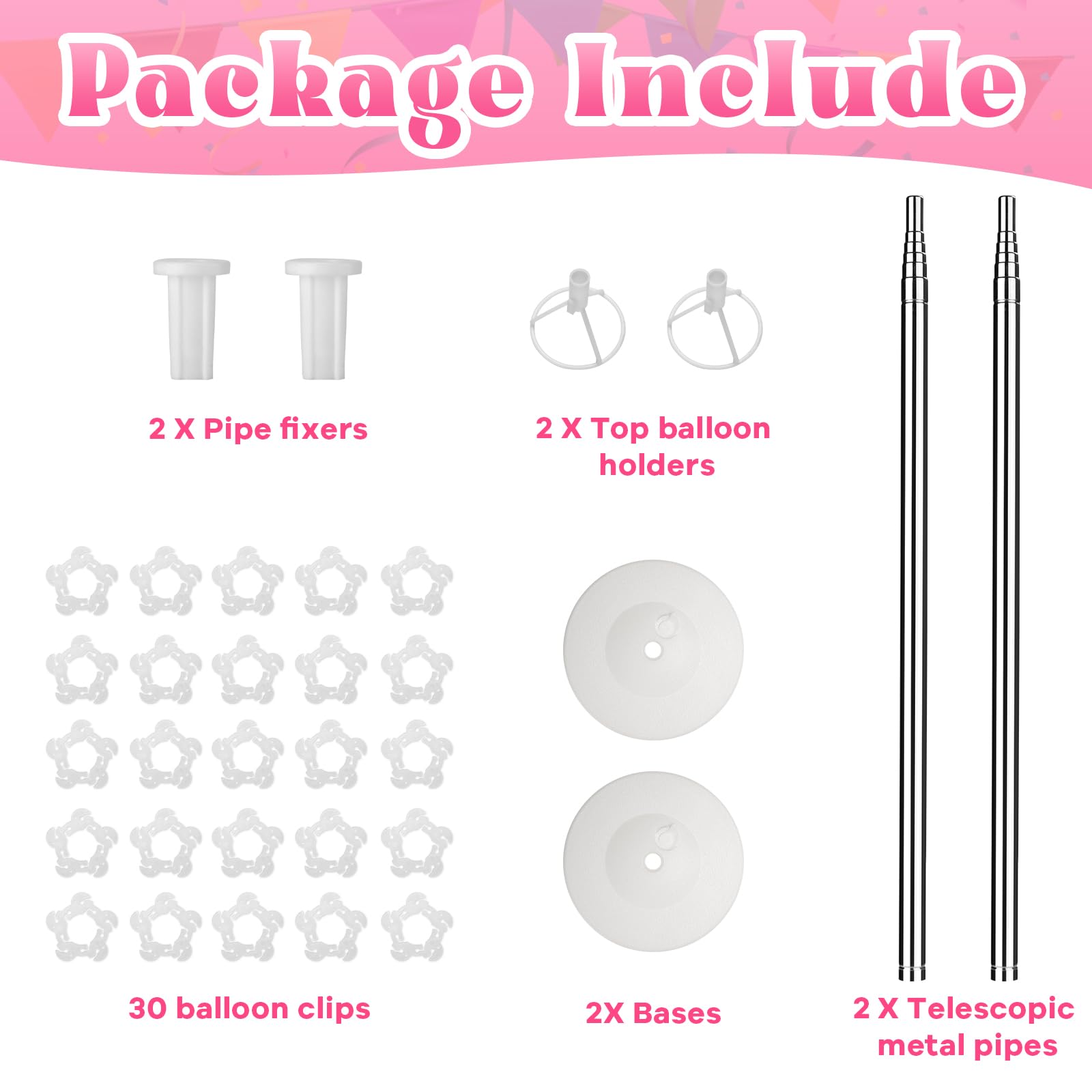 - Complete Set: The Voircoloria Balloon Stand Kit includes everything you need to create magnificent balloon arrangements. Each kit comes with 2 bases, 2 top balloon holders, 2 metal telescopic pillars, and 30 balloon clips, ensuring you have a comprehensive decorating solution for any occasion.