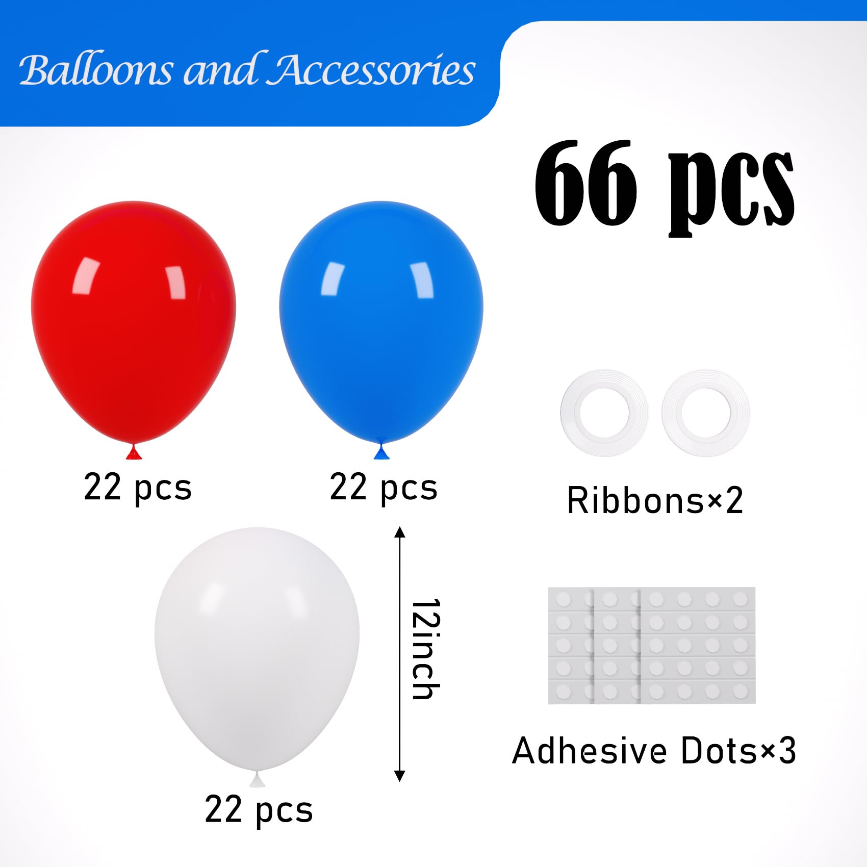 Voircoloria 66Pcs Red White Blue Balloons 12Inch Party Latex Balloons For Boys Girls Birthday Baby Shower Gender Reveal Wedding Sunflower Party Decorations Total 66Pcs Red White Blue Balloons Package Includes: 66Pcs 12Inch Red White Blue Balloons 2Pcs Roll Of Ribbons 1 Book Instruction Manual Of Balloon Accessories Warm And Sweet Reminders: 1.Please Do Not Inflate Red White Blue Balloons More Than 90%, Or Rub Against Overheated And Sharp Objects To Avoid Sudden Popping. 2.Get Red White Blue Balloons And Can Open It If You Have Any Questions About Balloons, You Can Contact Us In Advance Before The Party Starts. 3.All Usage Of Balloon Accessories Are In The Manual, But The Balloon Kit You Buy May Not Include All Balloon Accessories. Please Rest Assured That&Nbsp; The Voircoloria Balloon Kit Will Provide You With All The Necessary Balloon Accessories. 4.Strong Winds Or Excessive Clapping May Cause Them To Burst