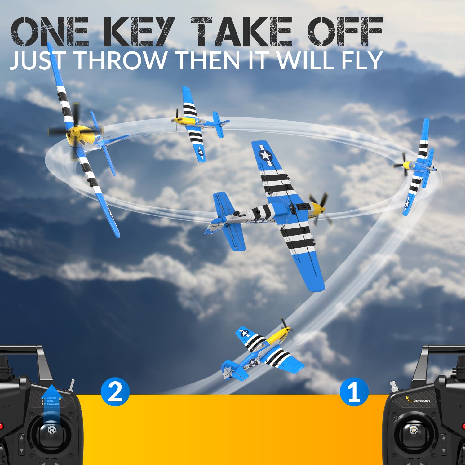 Experience the nostalgia of WWII with our authentic P51 Mustang remote control airplane. Made with eco-friendly materials, this toy ensures a safe and superior flying experience while delivering an exceptional replication of the iconic fighter plane. The gyro stabilization technology makes handling in windy conditions a breeze, thus making it perfect for novice pilots to learn step-by-step. With the 2.4GHz advanced radio system, you can fly multiple aircrafts simultaneously without the fear of interference. Ideal for both kids and adults, it offers 15-20 minutes of flight time per battery, thanks to its 400mm wingspan. The package includes two rechargeable batteries for hassle-free fun in the park. Made with durable EPP foam material, it can withstand slight crashes with ease. This airplane is ready to fly straight out of the box and comes with all the equipment you need, including a transmitter, spare propellers, and two rechargeable lipo batteries, making it the perfect toy for your loved ones.