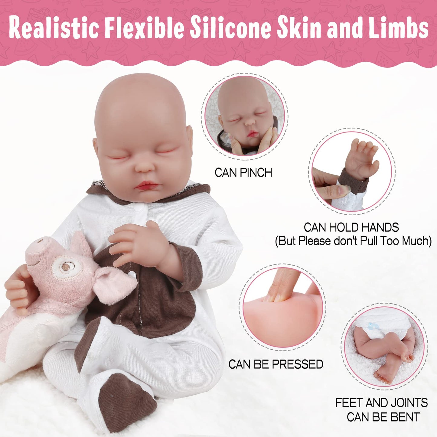 Vollence 18 Inch Eye Closed Full Body Doll Girl,Not Vinyl Dolls,Sleeping Lifelike, Bald,Soft Realistic Solid Platinum Silicone Baby Doll