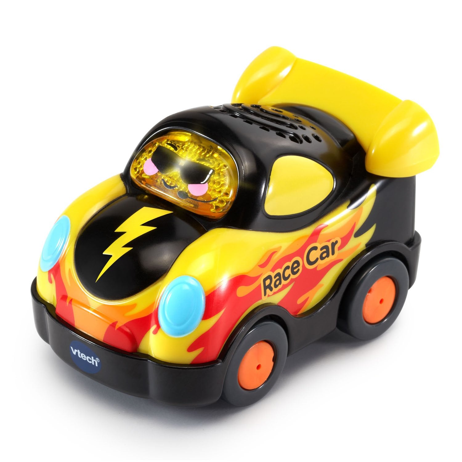 Kids can pretend to go anywhere as they play with the camo car and race car included in the go! Go! Smart wheels camo car & race car by VTech. Each vehicle responds to smart point locations with music, sounds and phrases on go! Go! Smart wheels playsets and go! Go! Smart animals tracks (each sold separately). perfectly sized for little hands, these electronic vehicles Also entertain children with a light-up button that activates music, sounds and phrases. Through pretend play, they'll learn about the vehicles, letters and more.