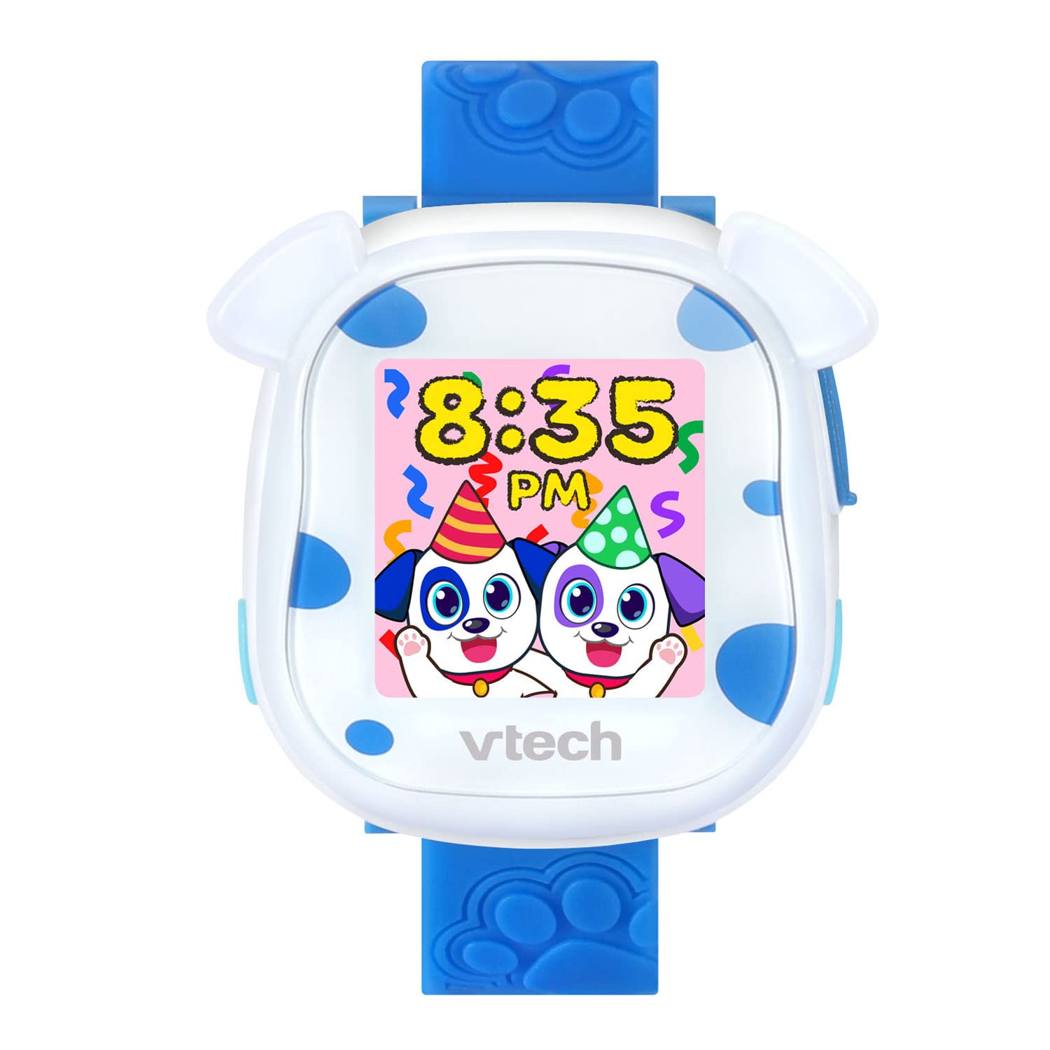 • Q: What features does the VTech My First Kidi Smartwatch offer? A: This smartwatch includes 20 digital and analog clock faces, touch screen interaction for feeding and grooming a digital pet, and the ability to train the dog to perform 20 different tricks, making learning fun.