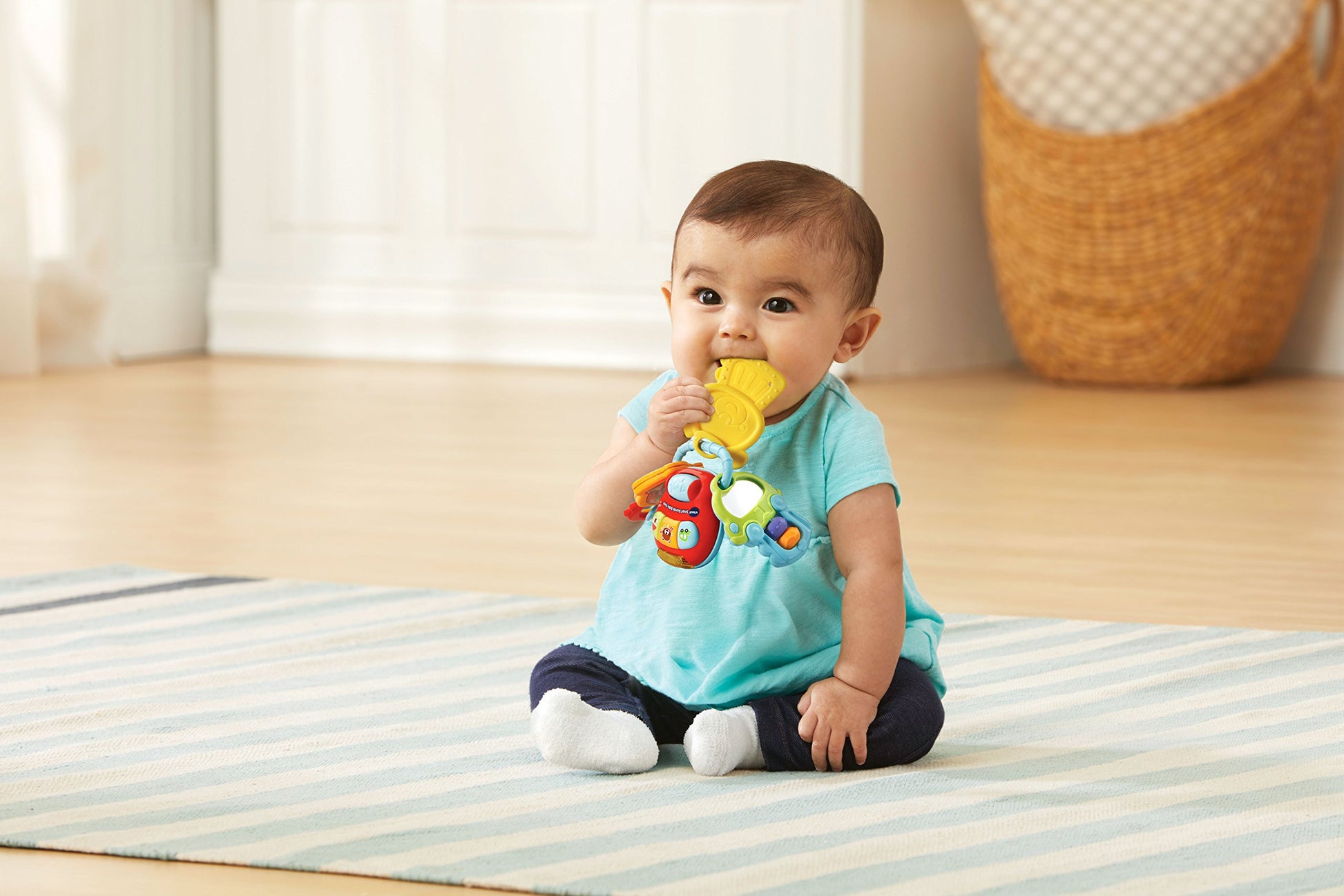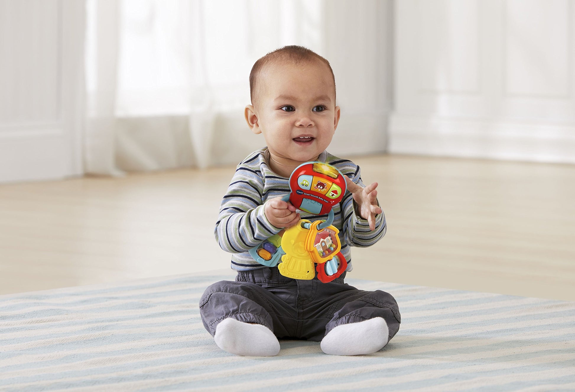 • Q: How do the VTech Baby Keys help with a child's development? A: These baby keys encourage interaction and help develop fine motor skills through textured rollers, rattle beads, and a spinning disc, while also introducing cause and effect concepts.