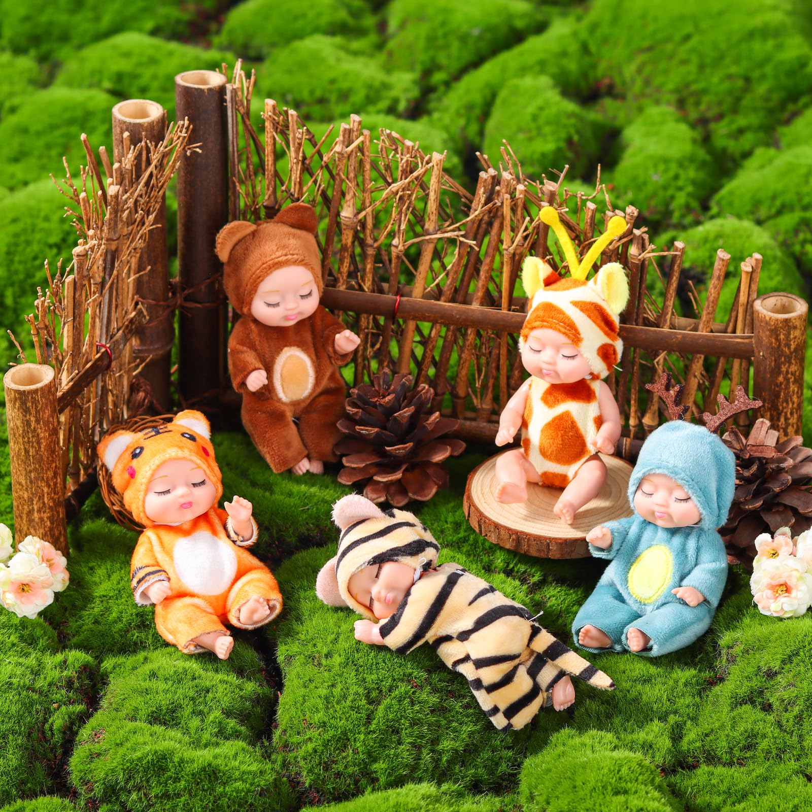 - Q: What types of animal outfits do the dolls come with? A: The set includes mini dolls dressed in 10 different animal outfits, including styles like bee, rabbit, cat, unicorn, leopard, brown bear, giraffe, elk, and two different tiger patterns, providing a variety of options for imaginative play.