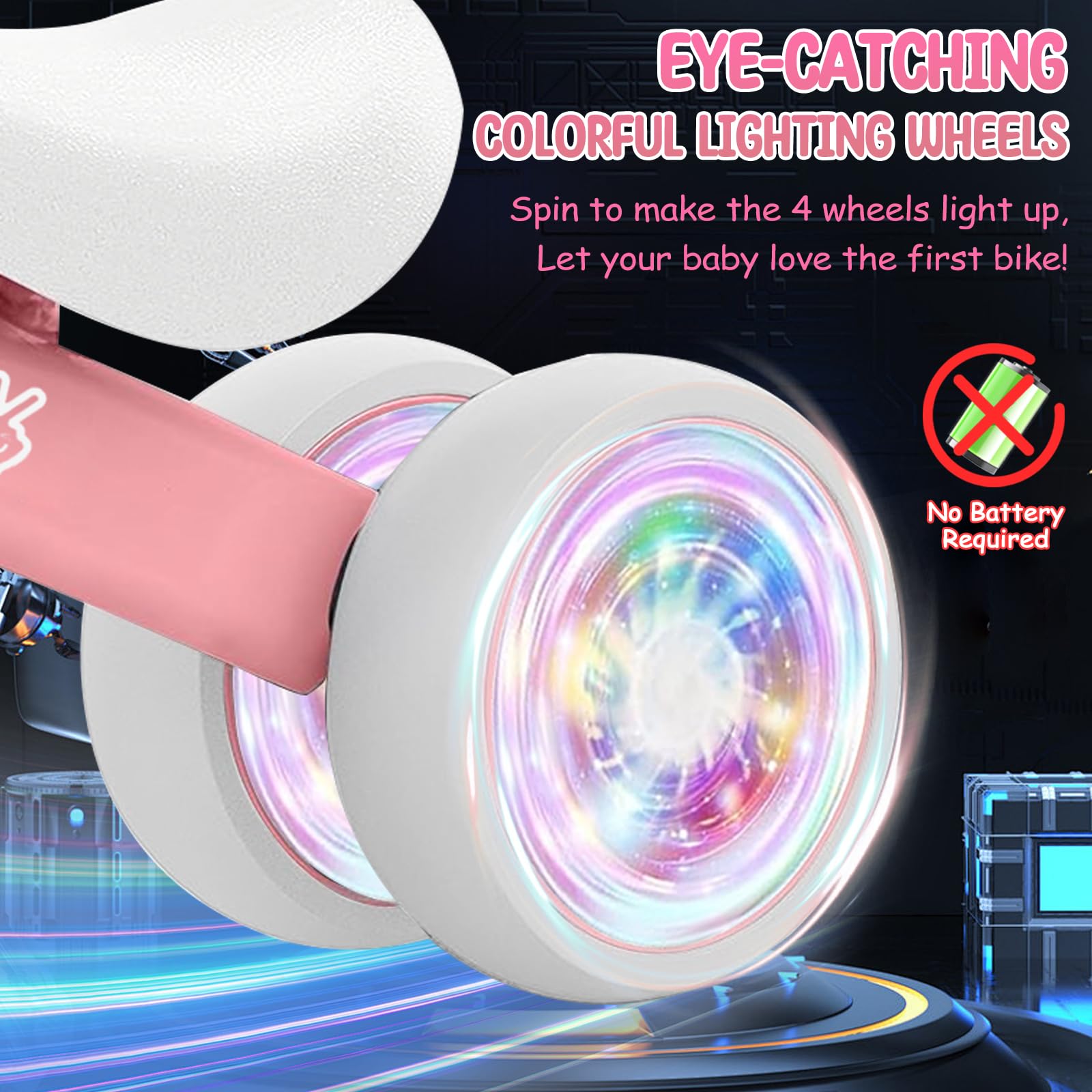 Vvinca Colorful Lighting Baby Balance Bike For 1 Year Old Boys Girls, 10-24 Months Toddler Balance Bike With No Pedal 4 Silence Wheels Children First Birthday Toys Gifts