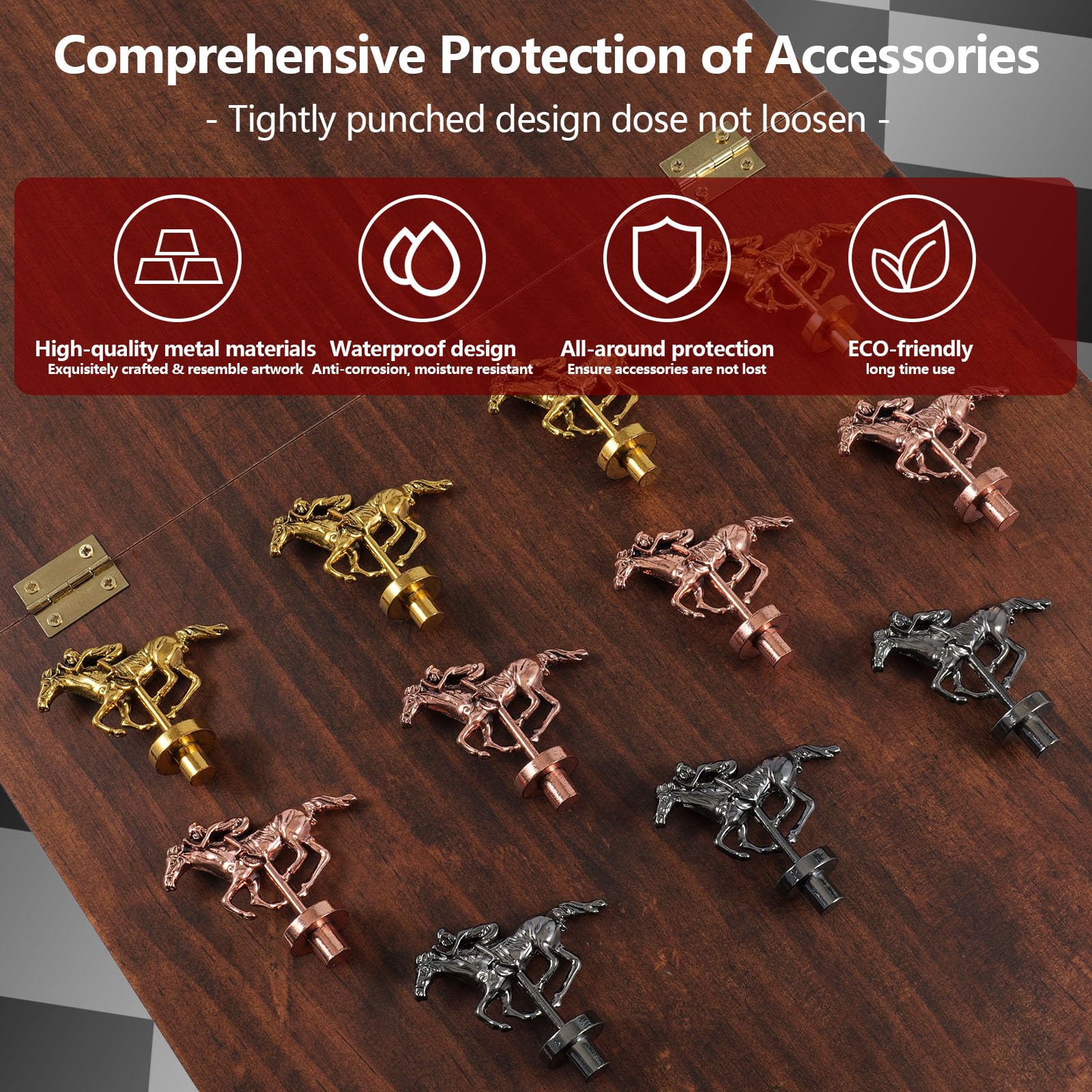 ?High Quality Board Game Set?Our products are made of high-quality solid wood, with exquisite craftsmanship and complete accessories. The product includes a folding game board (with a folding size of 10.5 * 12*1.65 inches and an unfolded size of 21 * 12*0.78 inches), a set of metal horses (4 gold, 4 rose gold, 3 silver gray), two playing cards, and a storage bag. The complete set of equipment provides you with a better gaming experience. | ?Folding Design Saves Space?Our product is different from ordinary horse racing game boards, as it adopts a folding design. The unfolded game board is large enough for easy play. When you're not playing, you can fold it up for storage and save space. In addition, the folding design makes it more convenient to take out and play, whether camping or traveling, it can bring unlimited fun to you and your family and friends. | ?Exquisite Production Techniques?Our product is made of high-quality natural wood, using high-end equipment to cut game boards and employing advanced carving and printing techniques to ensure even distribution of holes and bright colors. The surface of the game board has a waterproof coating, which can better protect the game board from damage and is sturdy and durable. We also used luxurious metal horses to match this game, making it more aesthetically pleasing overall. | ?Suitable as a Present?Our products have high quality, exquisite design, and complete equipment. At the same time, we also equipped it with a color box packaging, and when you receive it, you will surely marvel at its exquisite appearance. This game has received widespread popularity, not only suitable for playing with family and friends at parties, but also as a present for family and friends. | ?After Sales Guarantee?We are committed to providing customers with high-quality products and services. Each of our products is of high quality, and we will carefully package them for you to safely deliver them to your hands. If you have any dissatisfaction with the product you received, please contact us to help you resolve it. We will strive to address all your concerns.