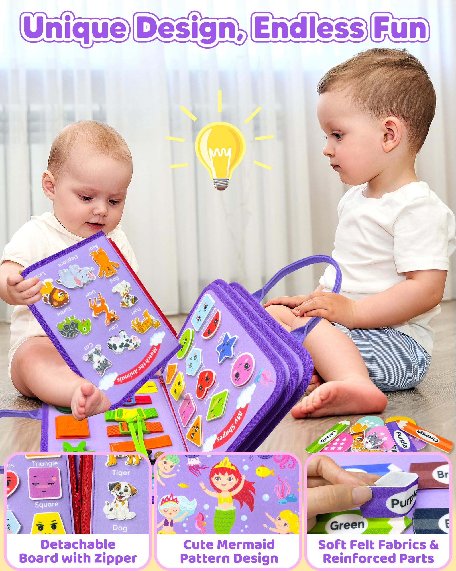 Walenty Toddler Busy Board Montessori Toys For Boys And Girls- Purple Mermaid