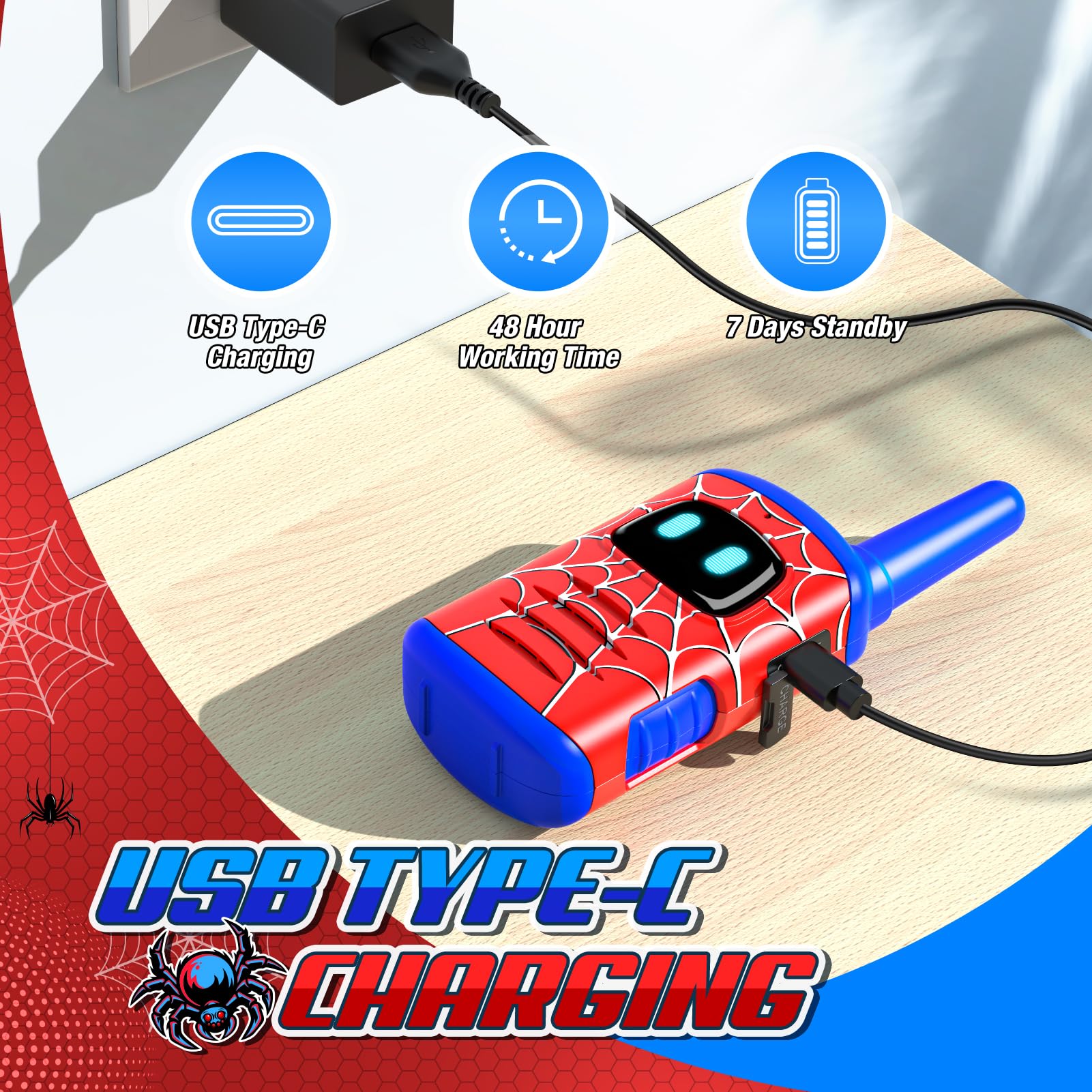 - Q: What is the battery life of the Walkie Talkies for Kids? A: The rechargeable walkie talkies feature a built-in lithium polymer battery that provides up to 8 hours of playtime and 3 days of standby time when fully charged for 1 hour.