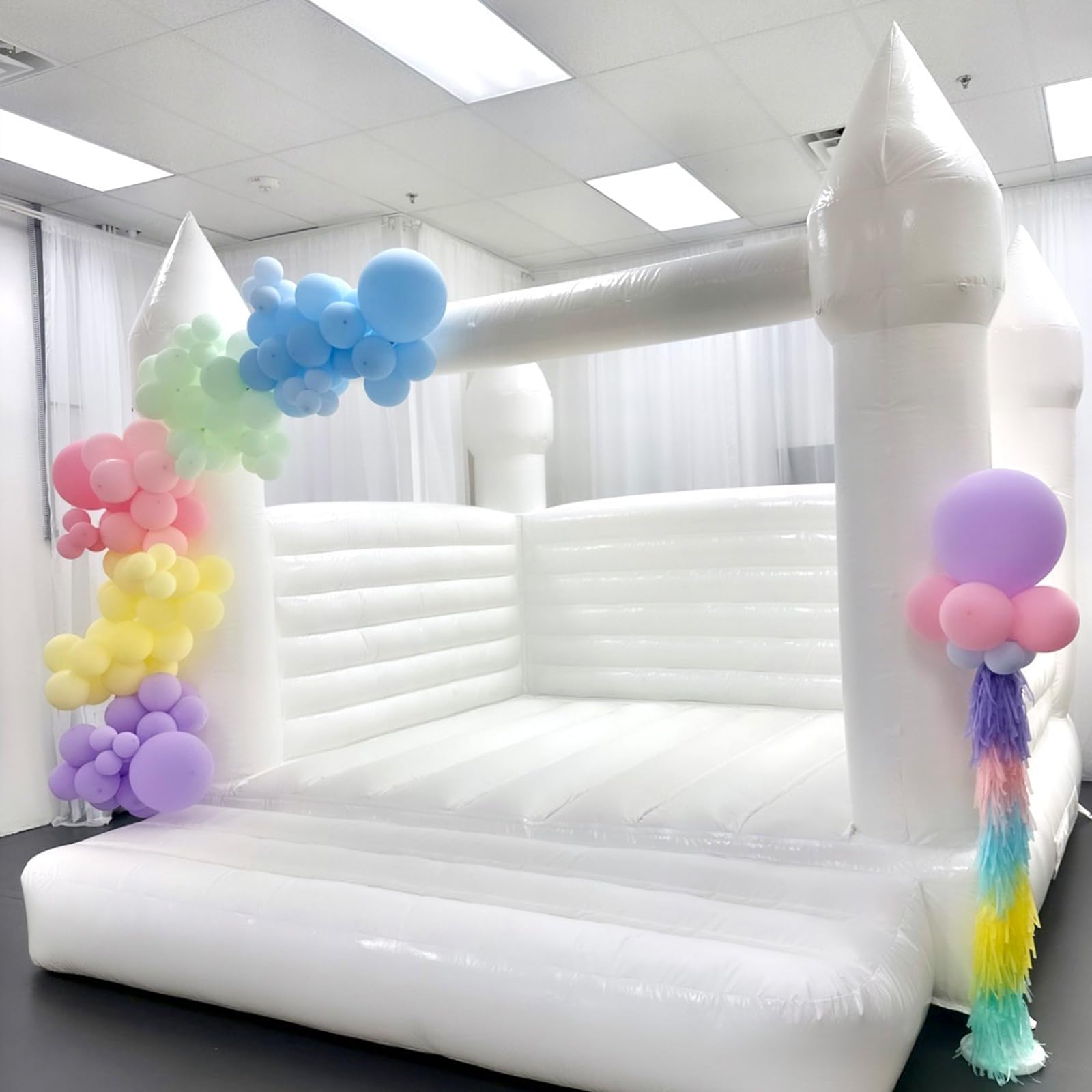 WARSUN Inflatable White Bounce House 13x12x10FT with Blower All PVC Bouncy House Castle with Large Jumping Area & D-Rings Decora