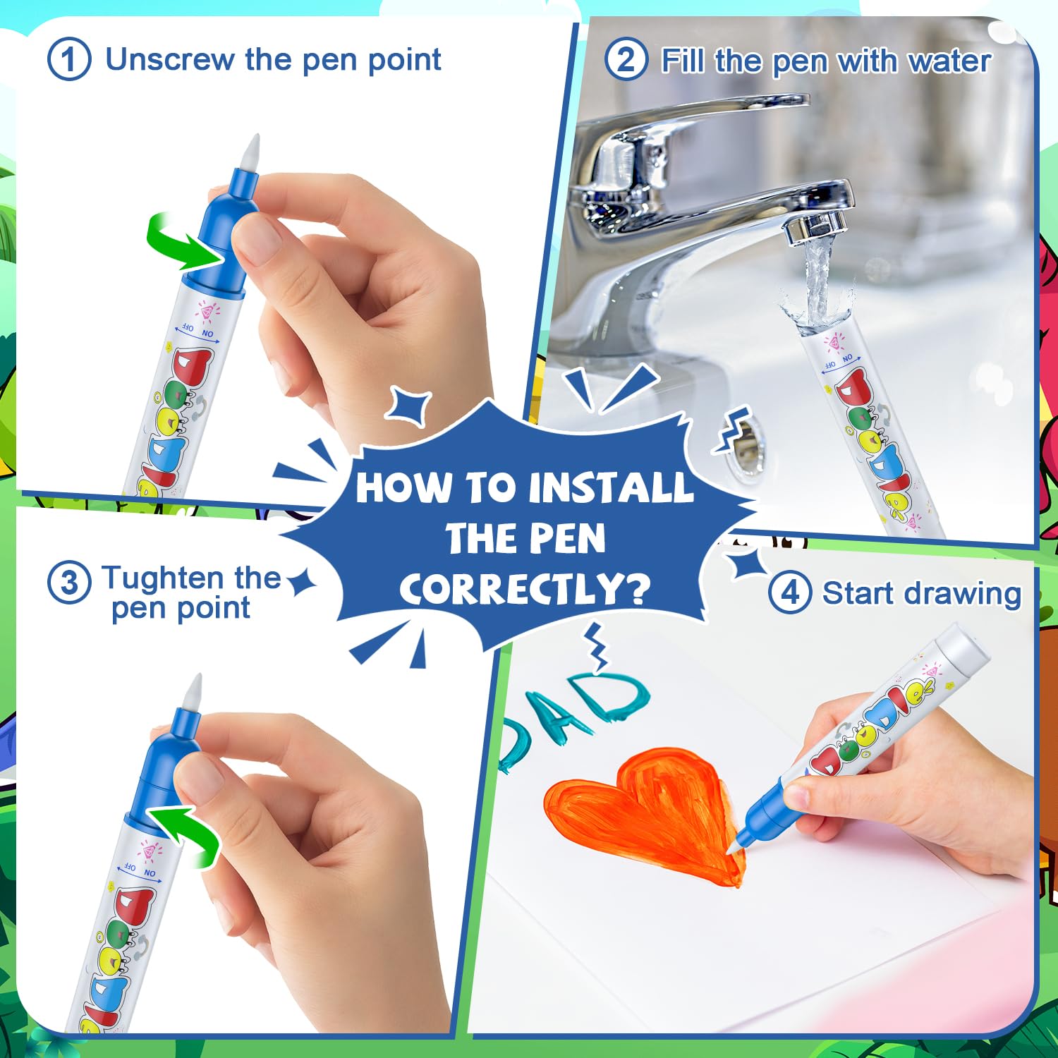 View compareWater Doodle Mat for Kids 32x40 Inch, Reusable Coloring Mat Educational Toy for 3 4 5 6 7 8 Years Old Girls & Boys, Neon Color M
