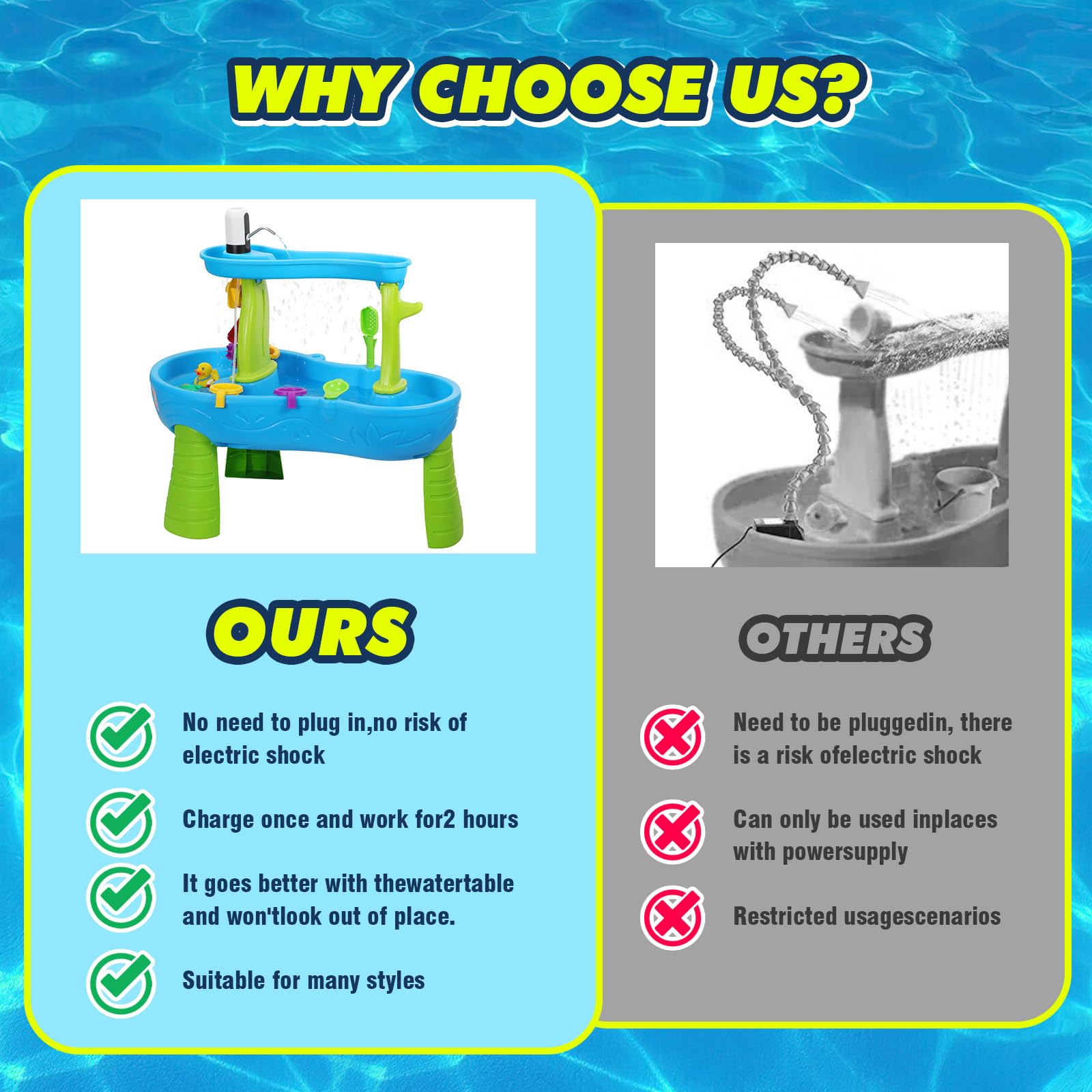 Portable Water Table Pump,Water Pump for Kids Water Play Table,Water Table Accessories Transform your ordinary kid water table into an endless fountain oasis with our Portable Water Table Pump. No cords or electricity needed, just effortless setup for hours of summer joy.