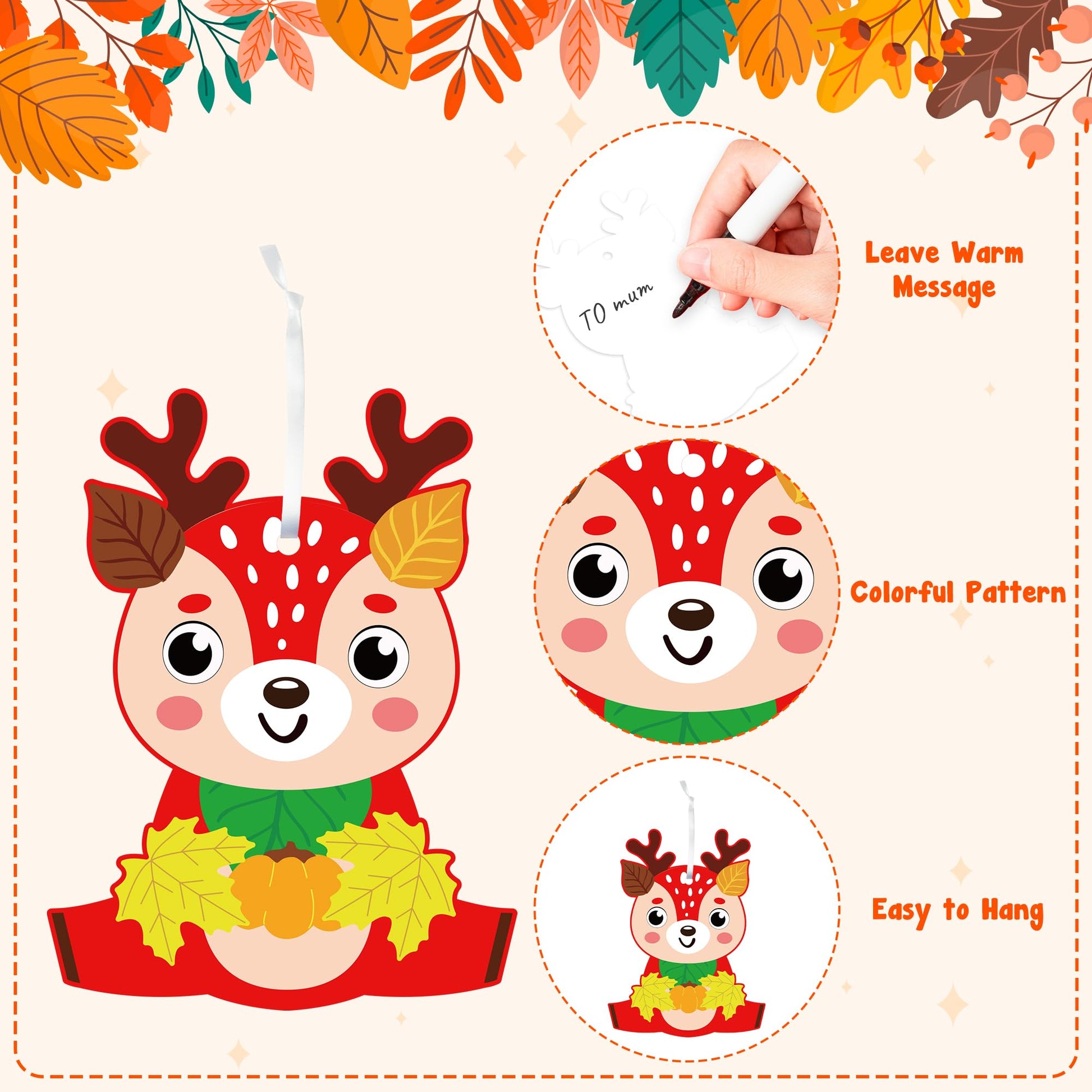 WATINC 123pcs Fall Craft Kits for Kids, Cute Animals Hanging Ornaments DIY Maple Leave Sticker Crafts with String, Fall Autumn T