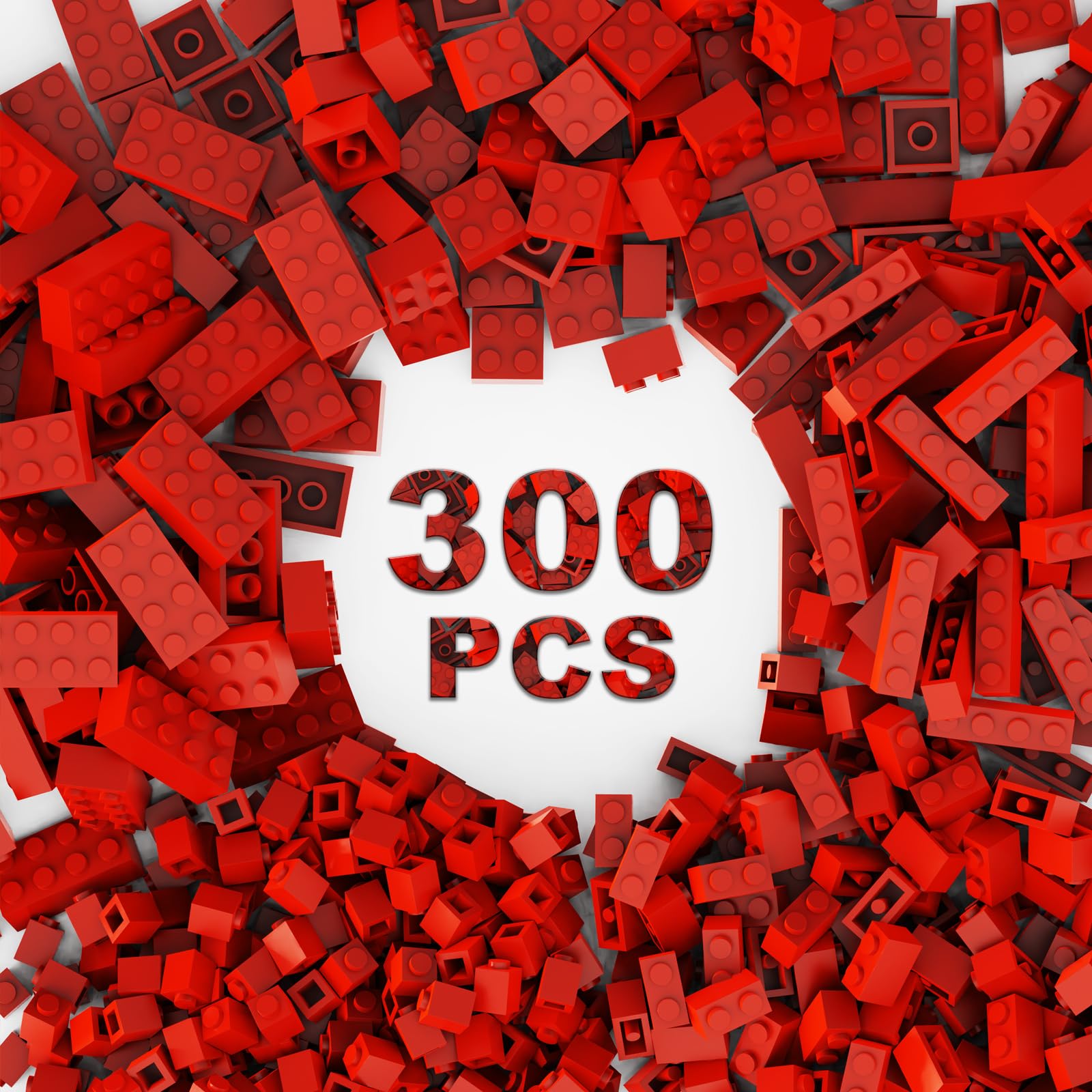 Webrick 300 Pcs Classic Building Bricks, Red Bulk Bricks,Compatible With Lego And Major Brands Parts And Pieces, Creative Buildi