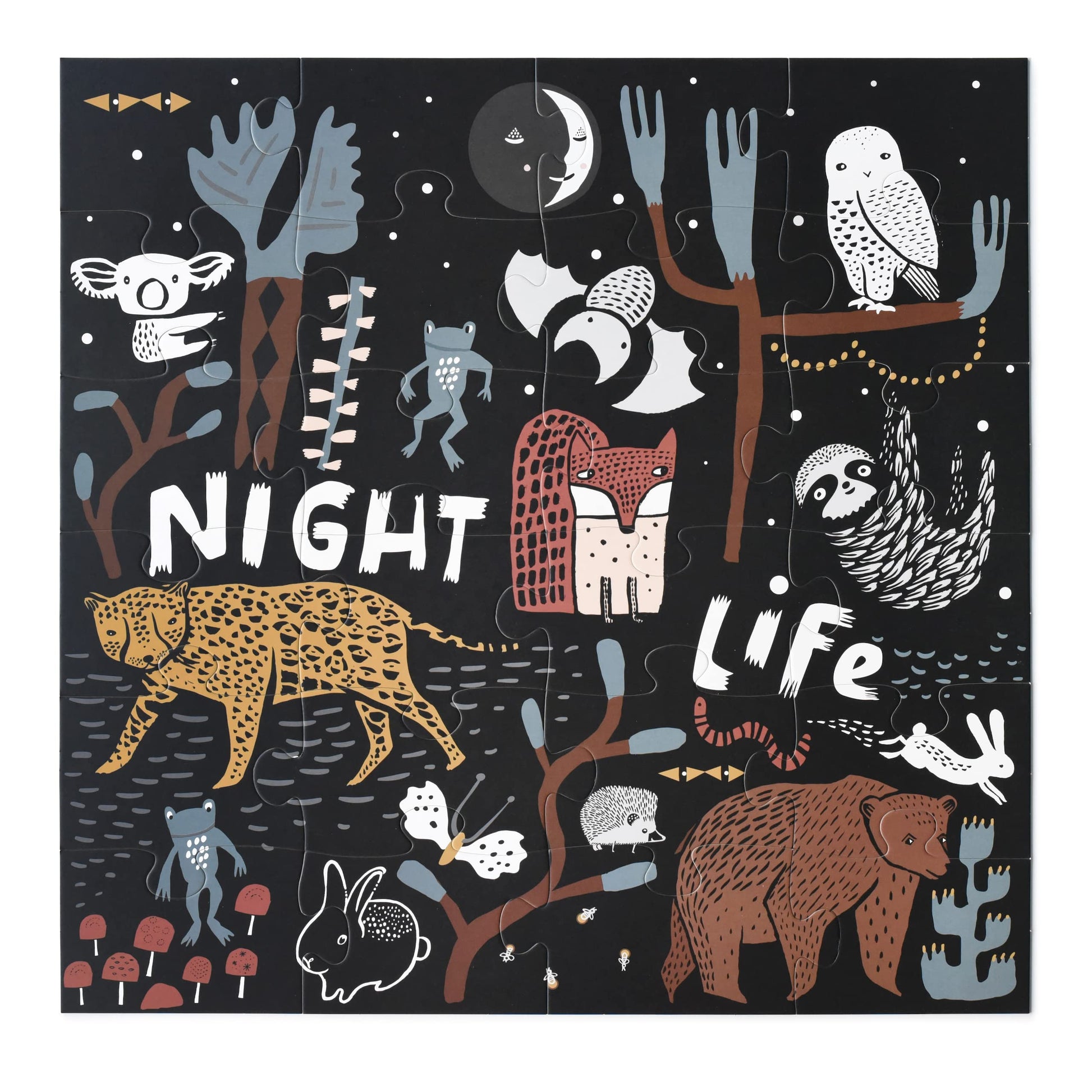 - Q: How does the Wee Gallery Night Life Floor Puzzle support child development? A: The puzzle promotes cognitive and motor skill development through problem-solving and hand-eye coordination activities, aligning with the Montessori philosophy of learning through play.