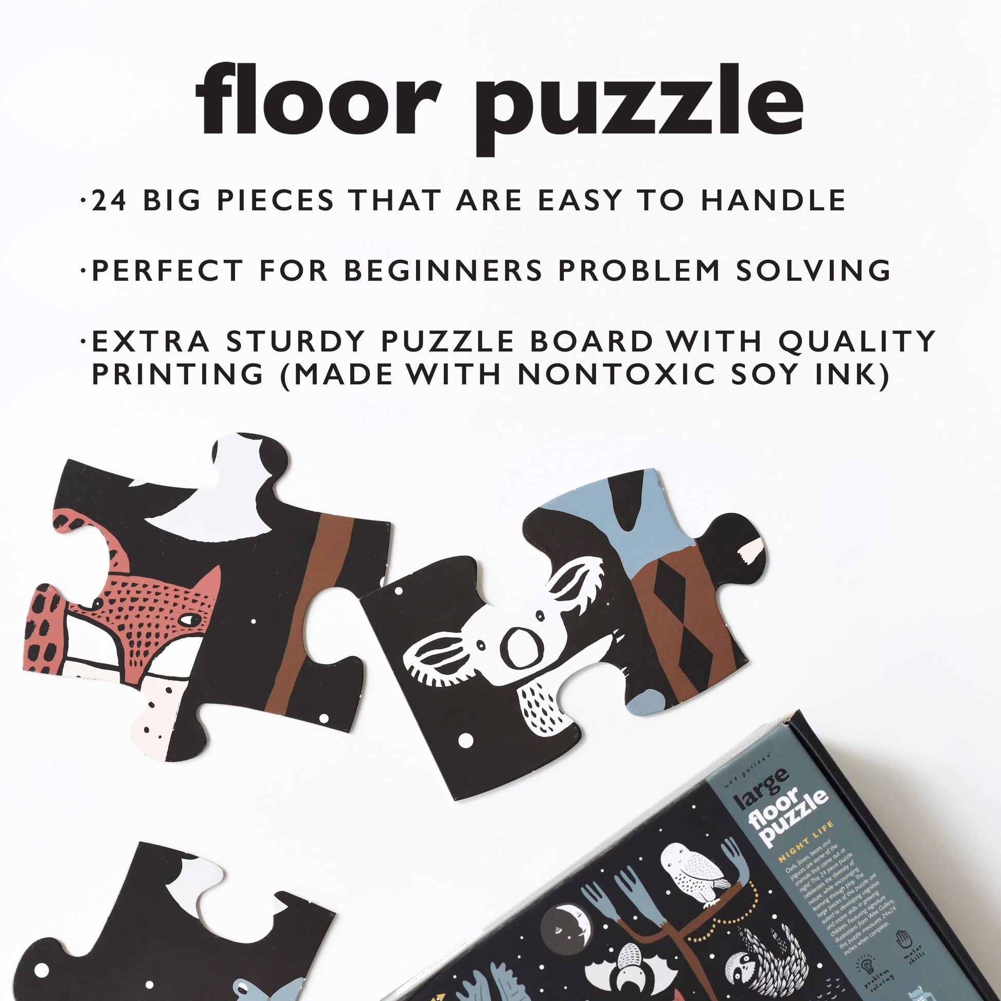 Wee Gallery Night Life Floor Puzzle, 24 Large Pieces, Durable Jumbo Jigsaw Floor Puzzles For Beginner, Toddlers, Preschool Kids, Learning Toy, Cognitive & Motor Development Activities, Brain Games