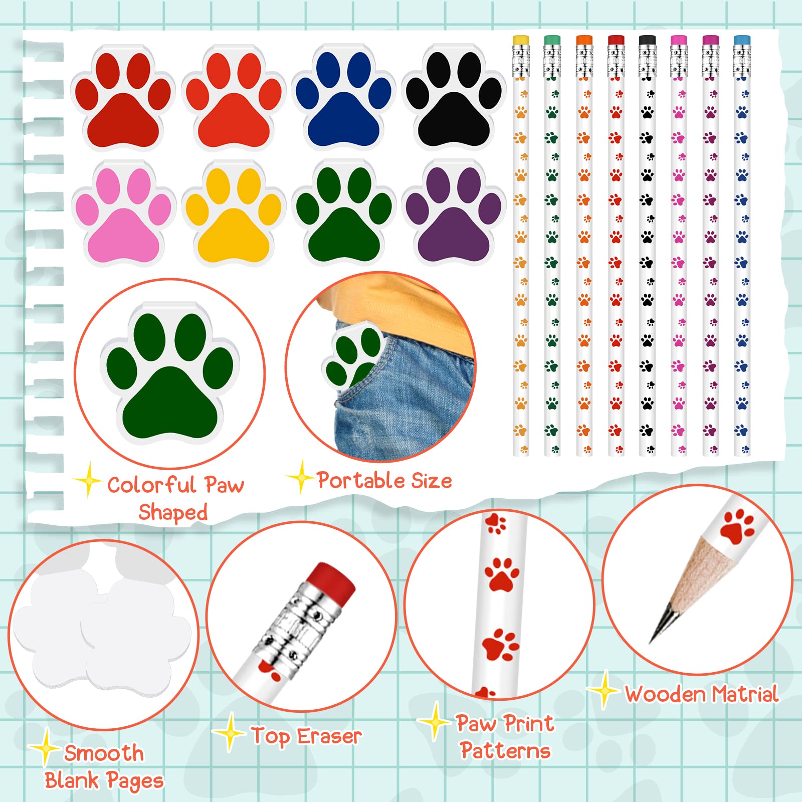 Weecent 32 Pcs Party Favors Kids Stationery Include 8 Colors Paw Print Pencil and Notpads Colorful Wooden Writing Pencils and Sm