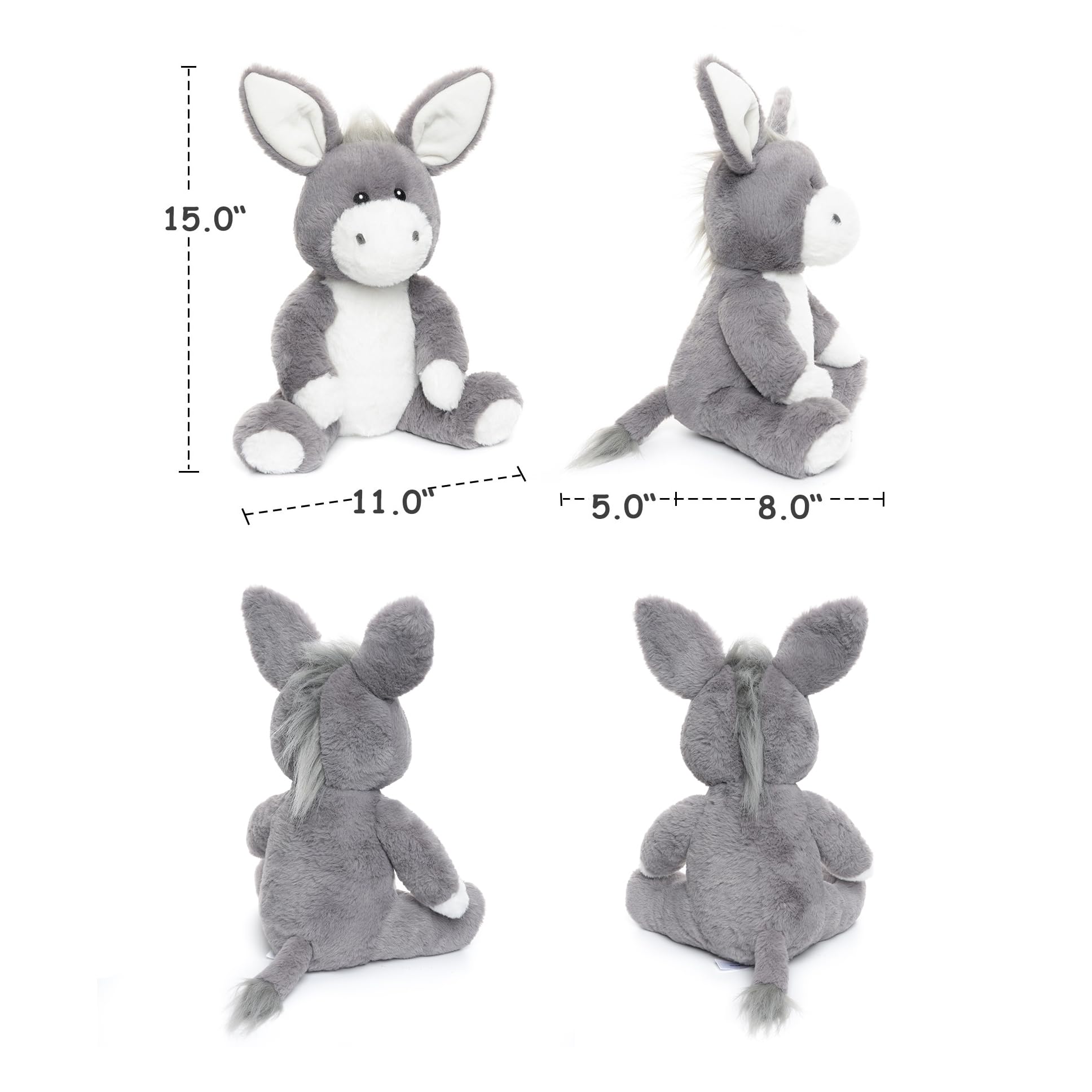WEIGEDU Donkey Stuffed Animals, Stuffed Donkey, Donkey Plush Toys for Boy Girl Kids Birthday Christmas Gifts, 15 inches