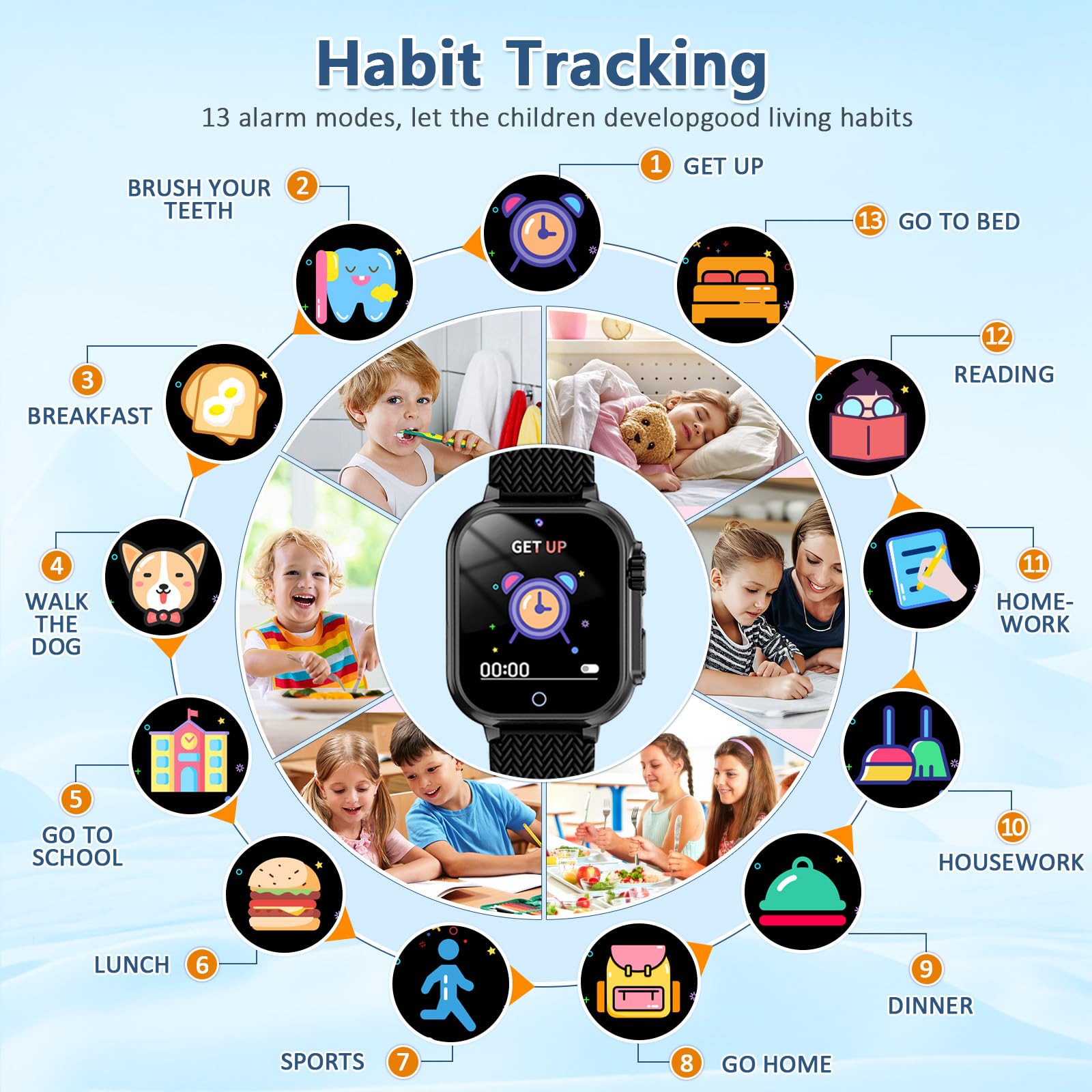 Kids watch with selfie-cam, 32 games, MP3 player, audiobooks, voice recorder, pedometer, flashlight, alarm, habit tracking, stopwatch, 100 learn card, calculator, theme, screensaver select, parental control, silent profile, time format, volume, etc. They can help kids stay organized, track their activities, make learning fun with educational games and apps.girls toys age 6-8, 8 year old girl gifts, girls toys 8-10