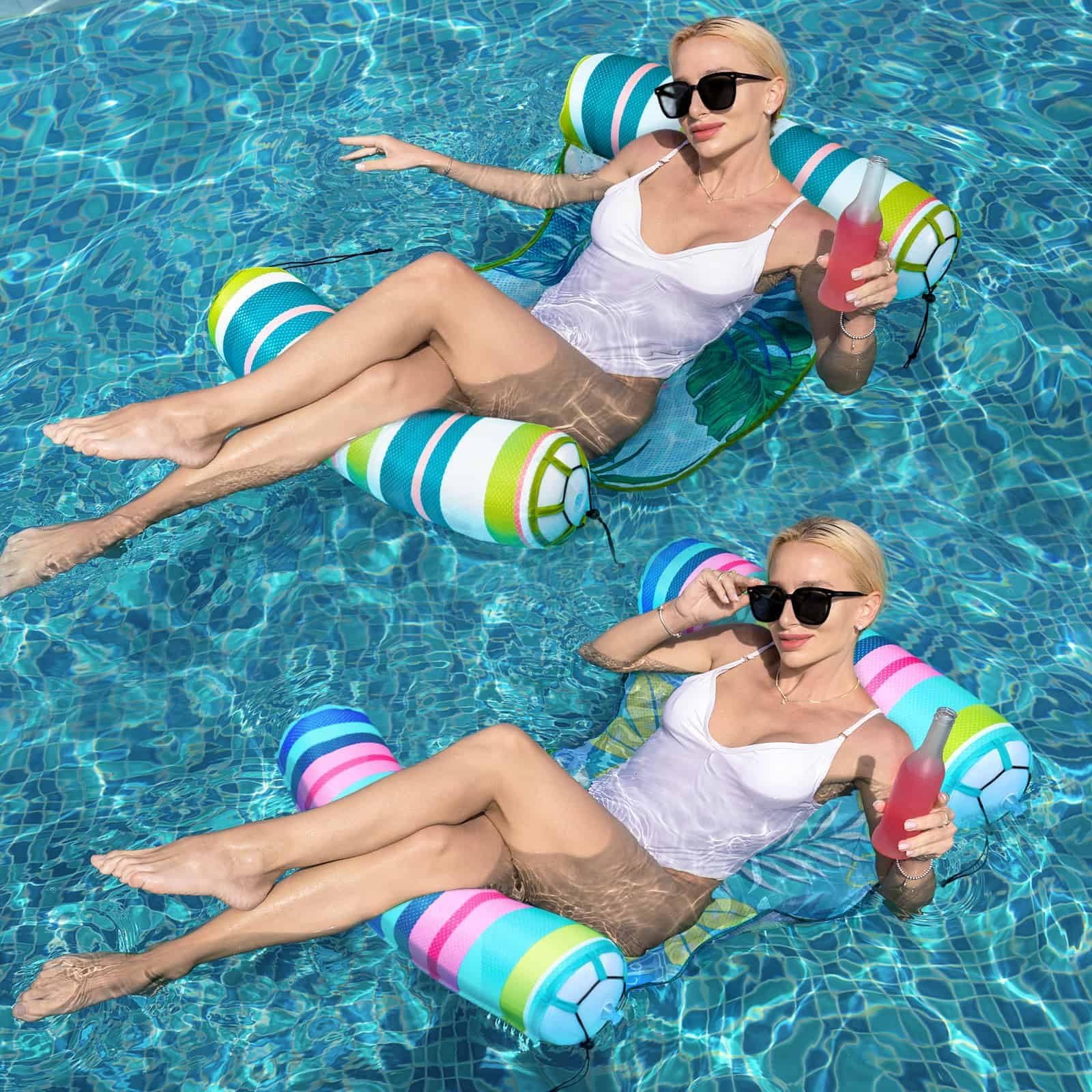 View compareWernnsai 2 Pack Inflatable Pool Floats - Water Hammock For Adults Fabric Mesh Pool Floaties Multi-Purpose 4-In-1 Saddle Lounge C
