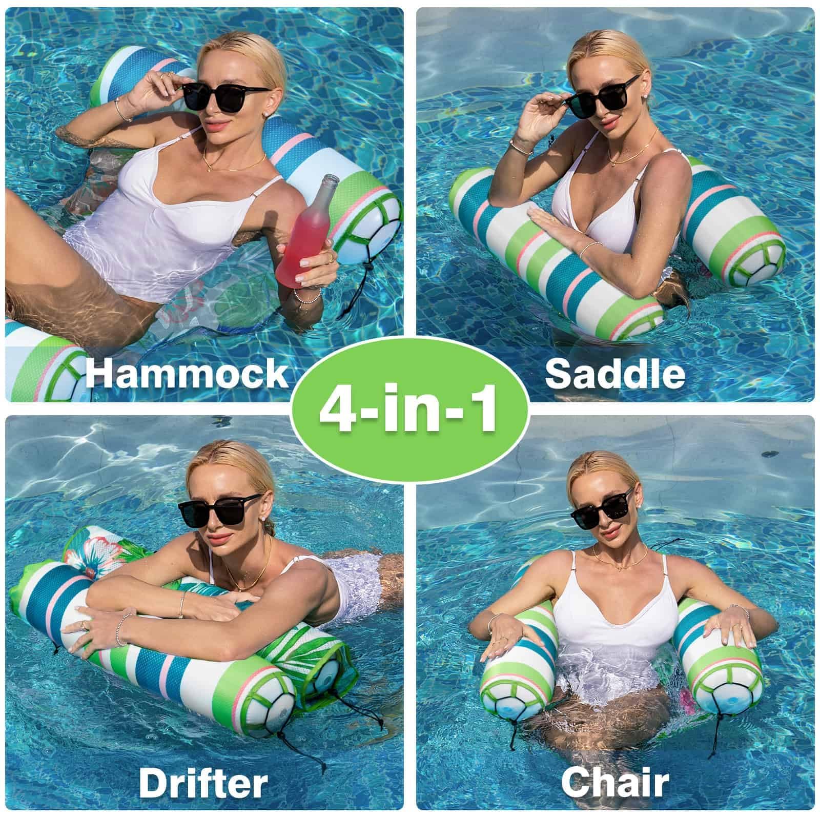 View compareWernnsai 2 Pack Inflatable Pool Floats - Water Hammock For Adults Fabric Mesh Pool Floaties Multi-Purpose 4-In-1 Saddle Lounge C