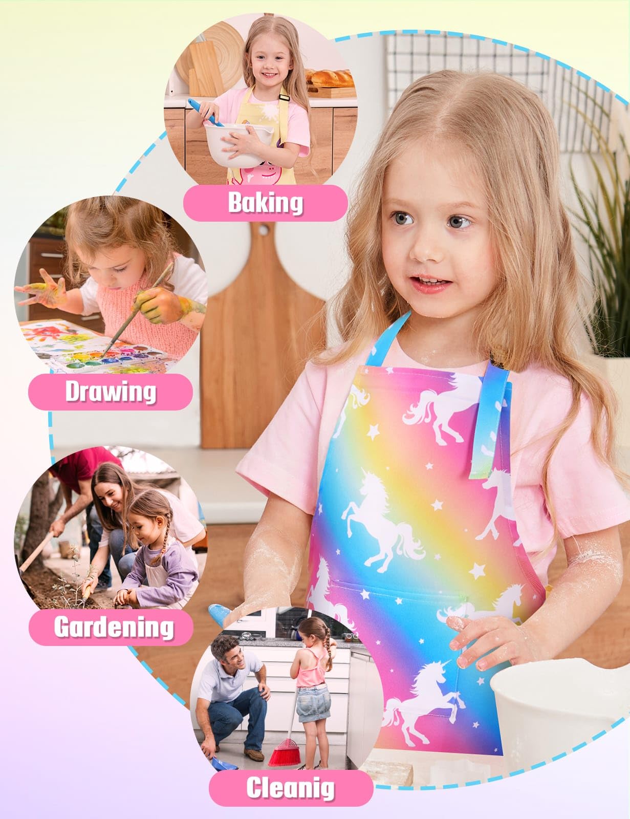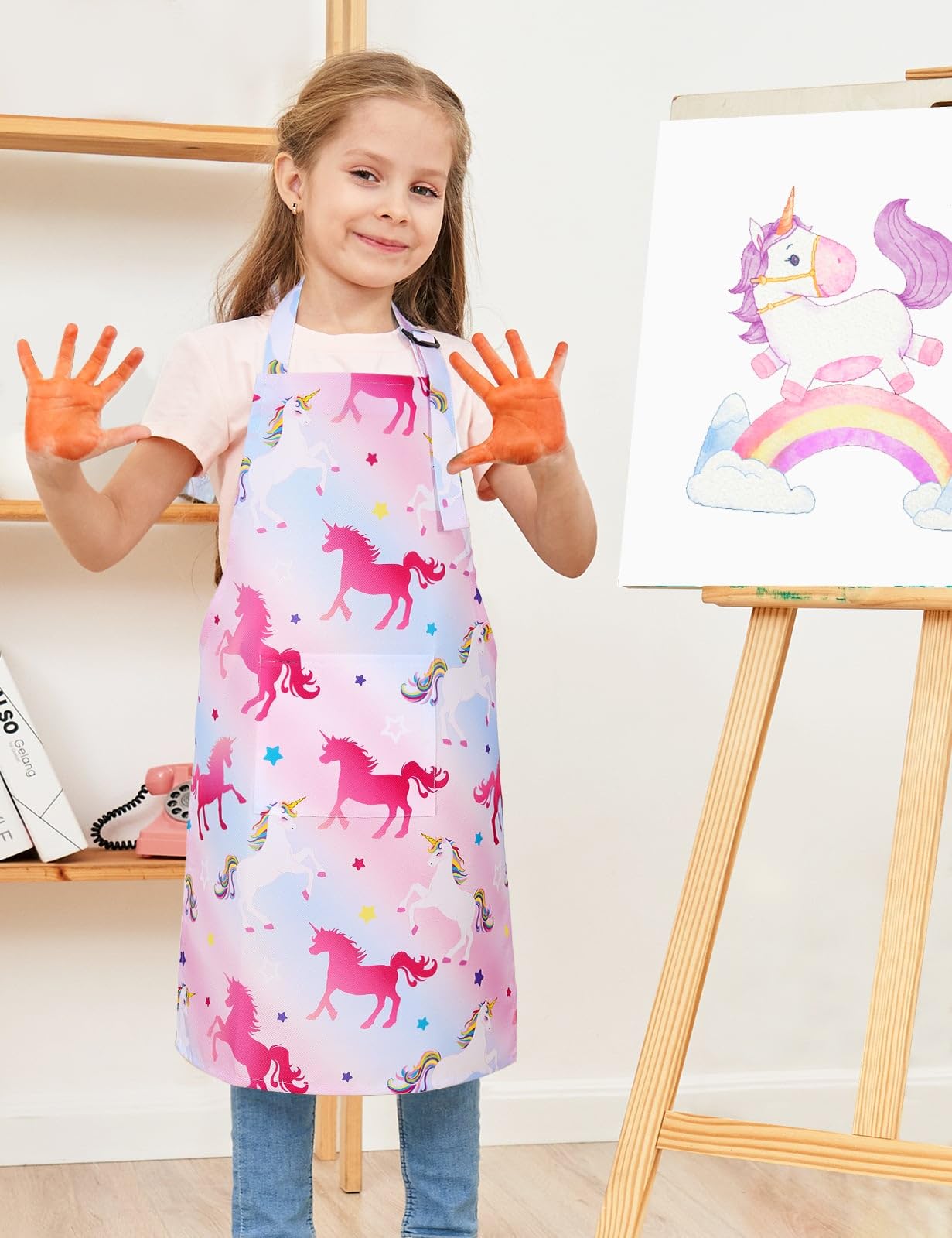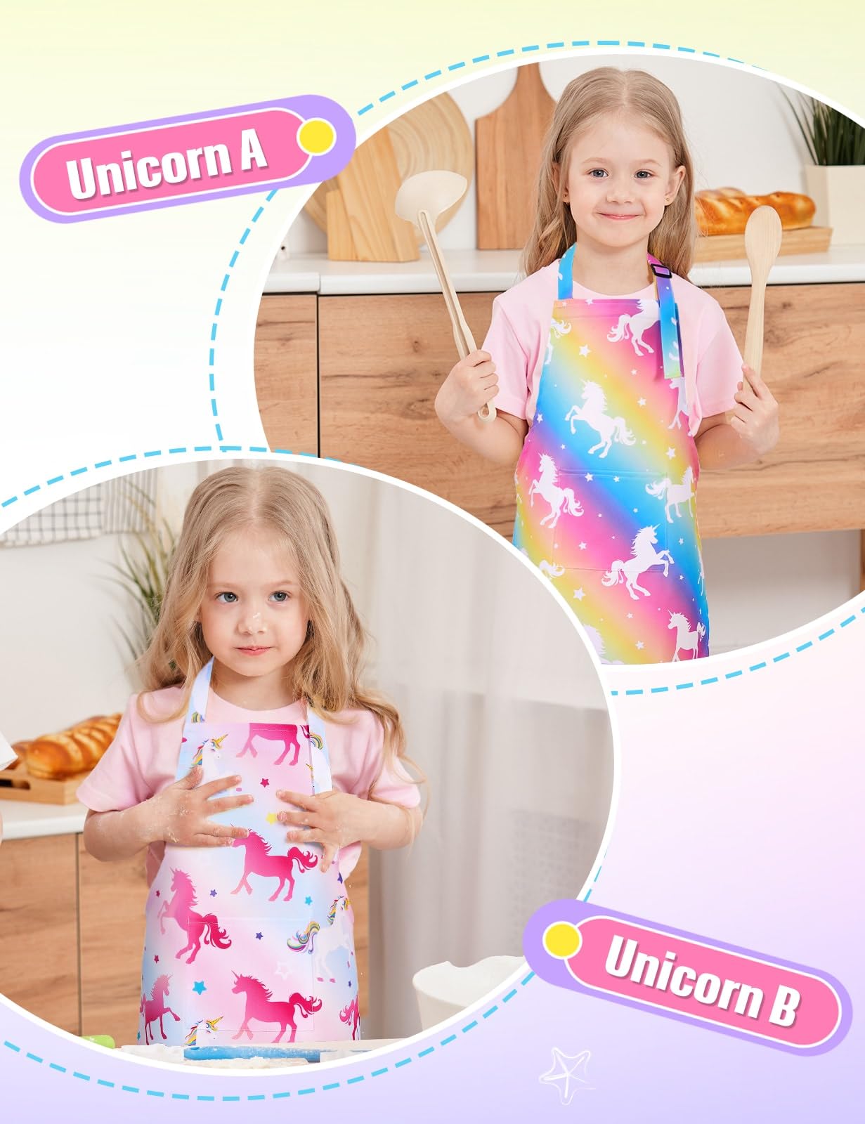 Wernnsai 2 Pack Kids Aprons - Unicorn Kids Art Aprons For Girls Waterproof Toddler Chef Aprons For Cooking Baking Painting Gardening Apron For Kids With Pocket Kitchen Classroom Art Smocks 2-5 Years