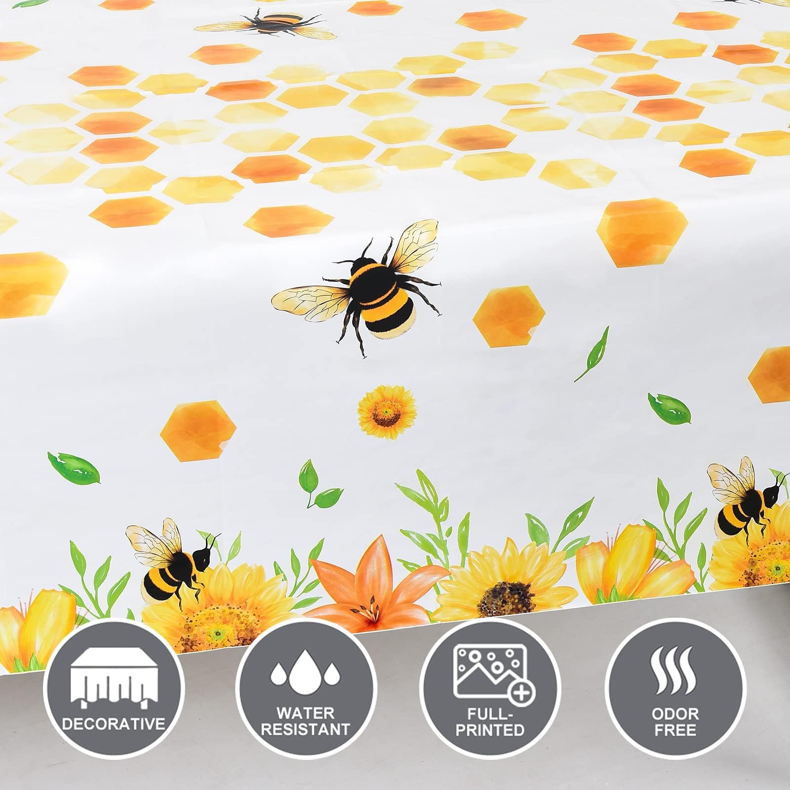 ---Features And Benefits: --The Sweet Bee Tablecloth Will Make Your Party Fun And Attractive, Leave A Deep Memory For Your Kids And Friends. --Welcome To Use Our Bee Series Of Party Supplies, The Effect Will Be Better. --Feel Free To Contact With Us For Any Unpleasant Reasons, We Will Reply In 24Hrs.