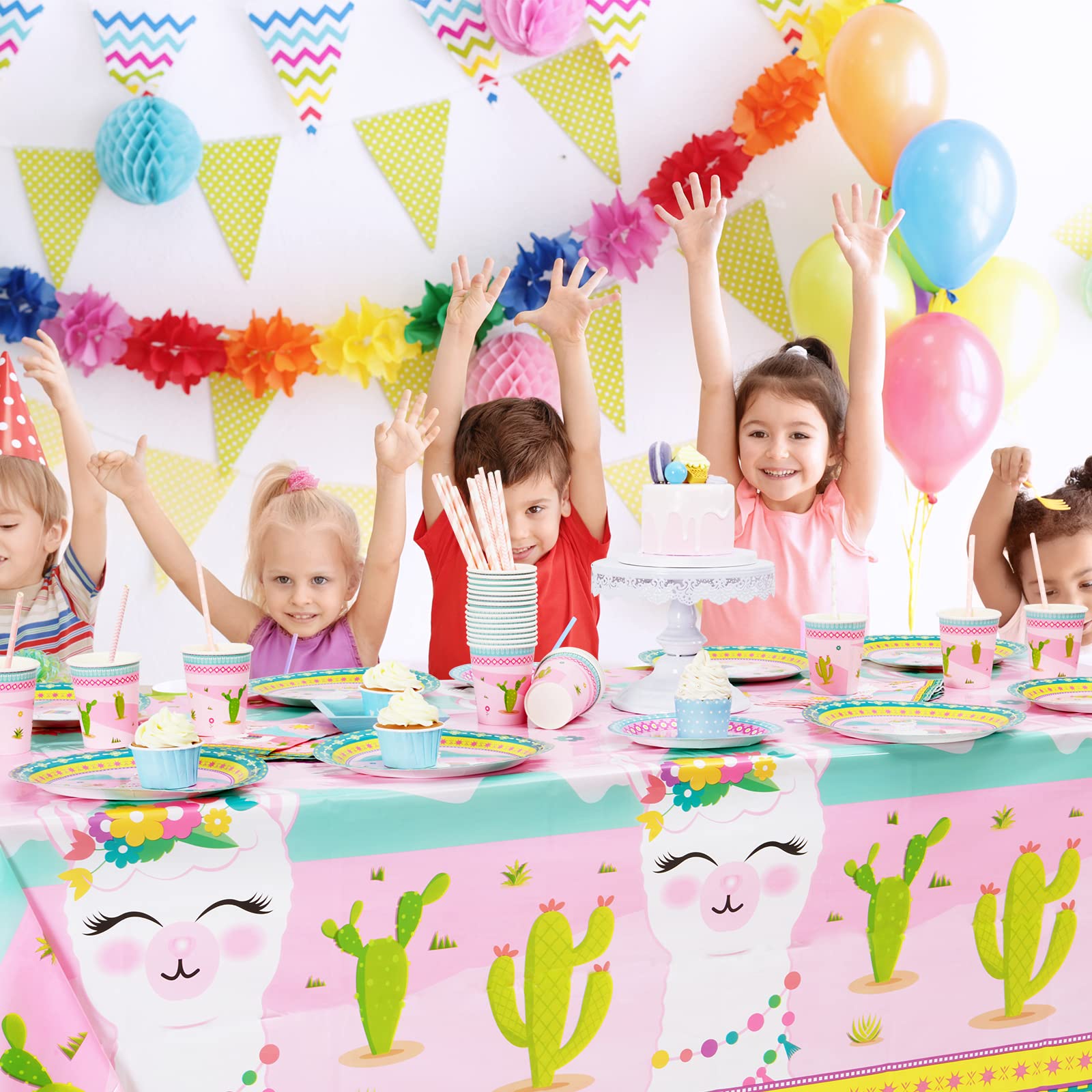 WERNNSAI Llama Table Cover - 2 PCS 54 x 108 Party Disposable Plastic Tablecloth, Alpaca Lama Party Supplies for Kid Girl P