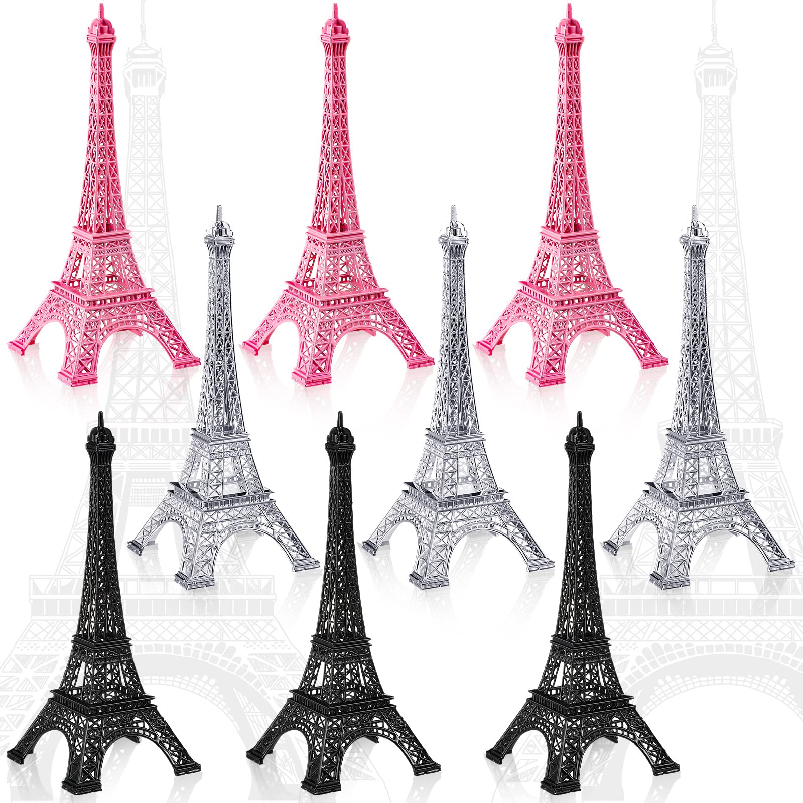 - Q: What colors do the Eiffel Tower statues come in? A: The Eiffel Tower statues are available in three elegant colors: pink, silver, and black, with three pieces of each color included in the package.