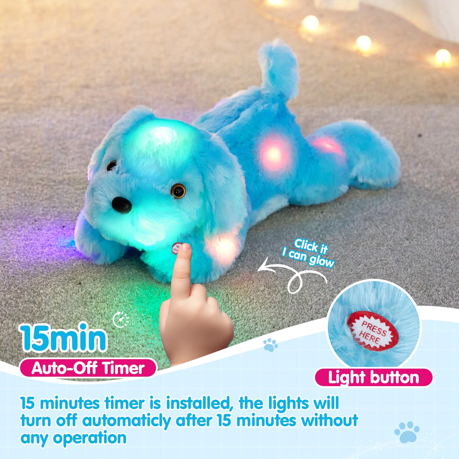 - Q: What are the features of the WEWILL 18'' Light up Puppy Stuffed Animal? A: The WEWILL 18'' Light up Puppy Stuffed Animal features 7 colorful LED lights that change, creating a beautiful glow at night. It has an automatic shut-off feature that activates after 15 minutes of inactivity, ensuring energy efficiency. This plush toy is made from soft, high-quality 100% PP cotton, making it safe and comfortable for children.